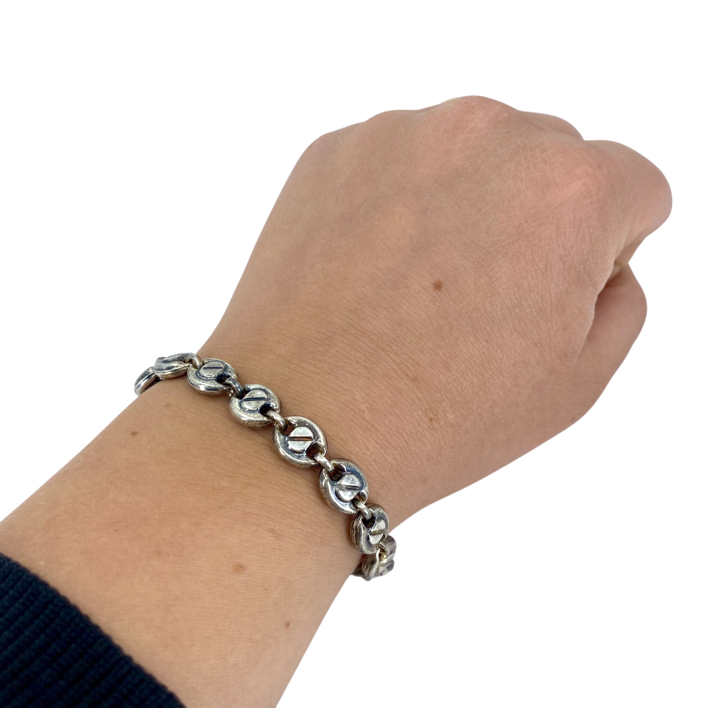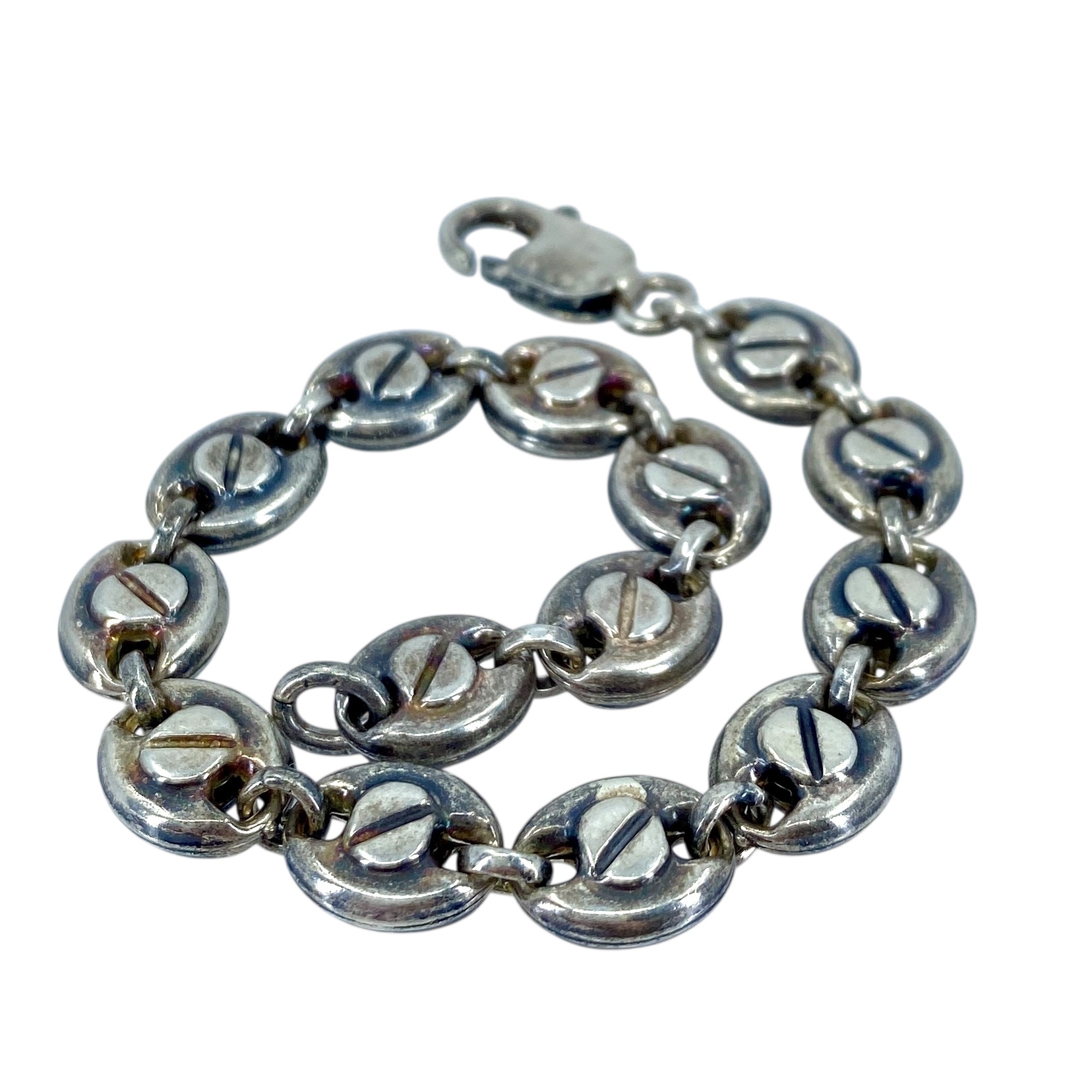 Unique Chain Vintage Sterling Silver Bracelet, 7.25in, 12.13g