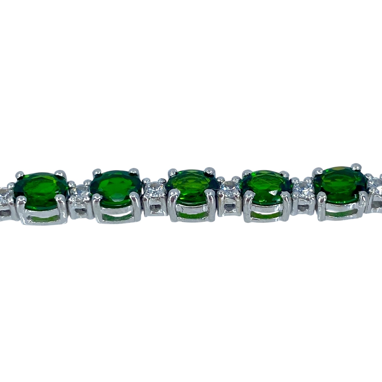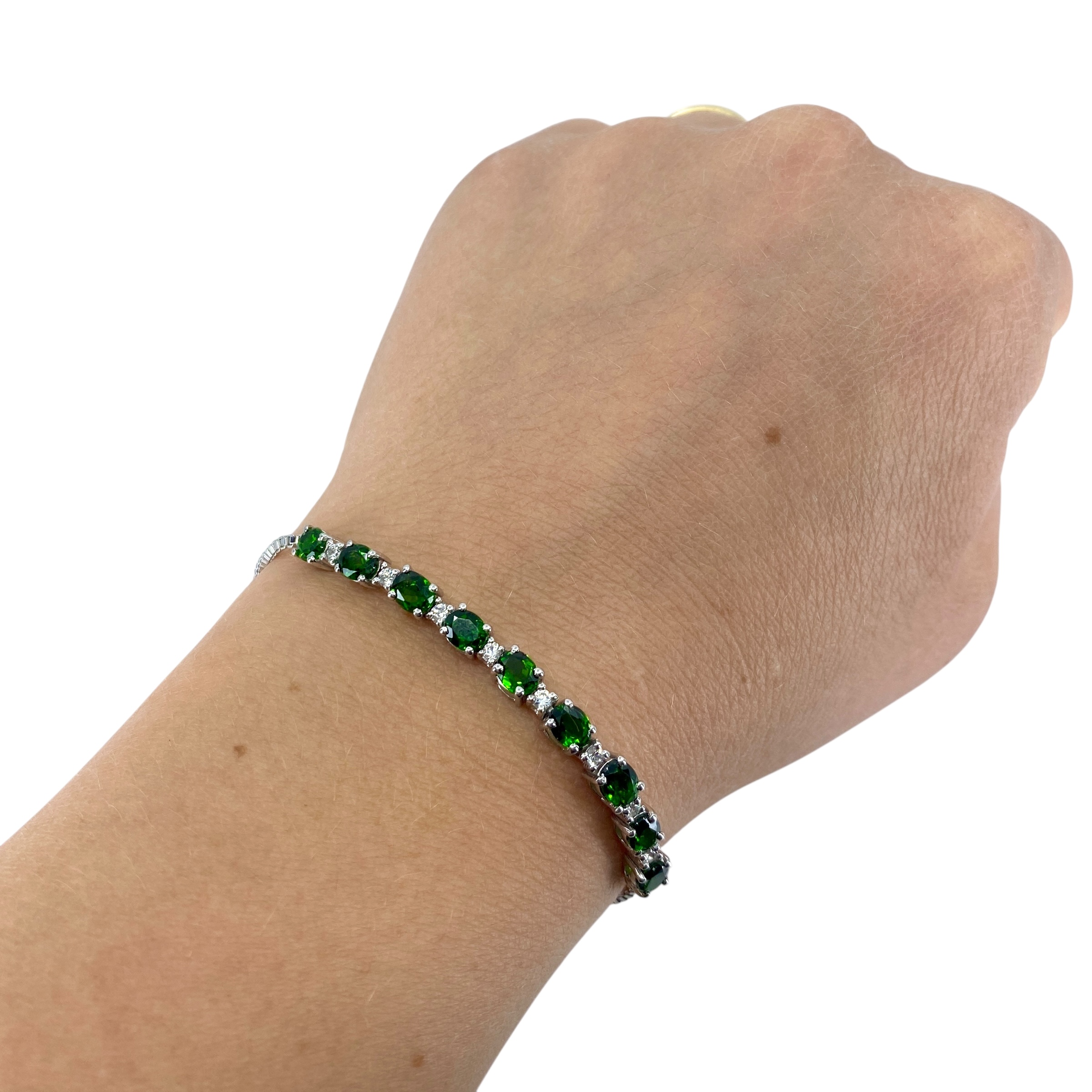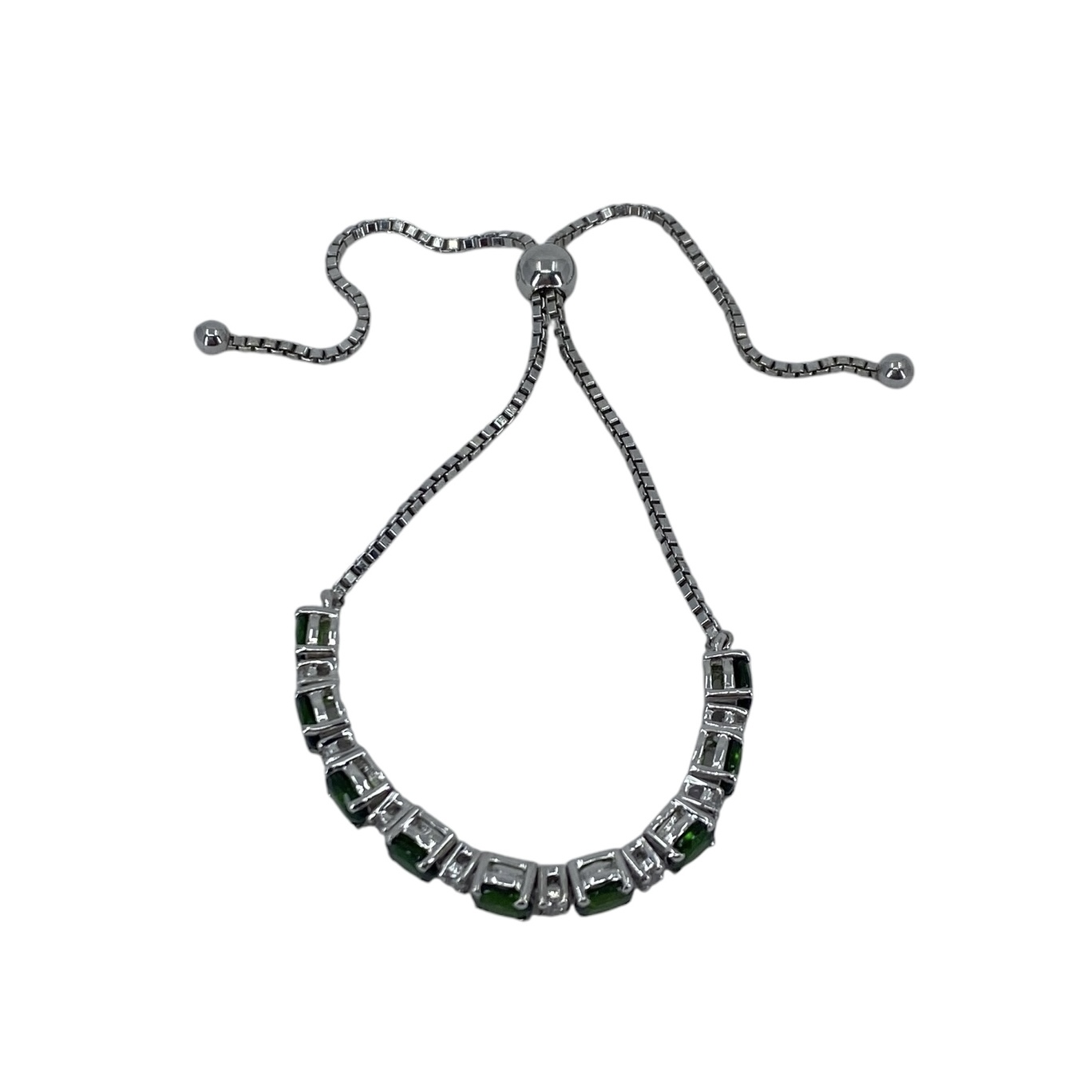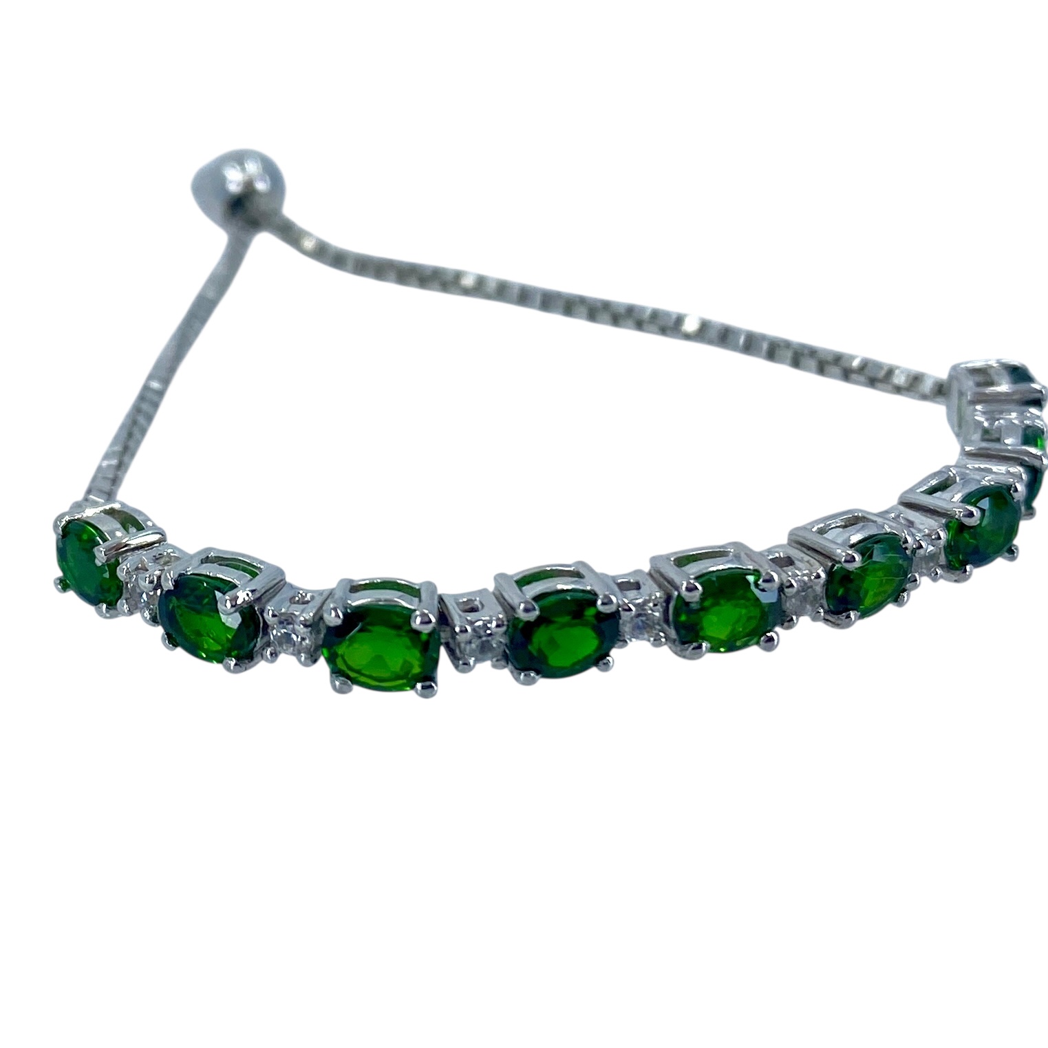 Elegant Emerald + Topaz Sterling Silver Box Chain Adjustable Bracelet, 10in, 7.29g, Engraved “STS 925”