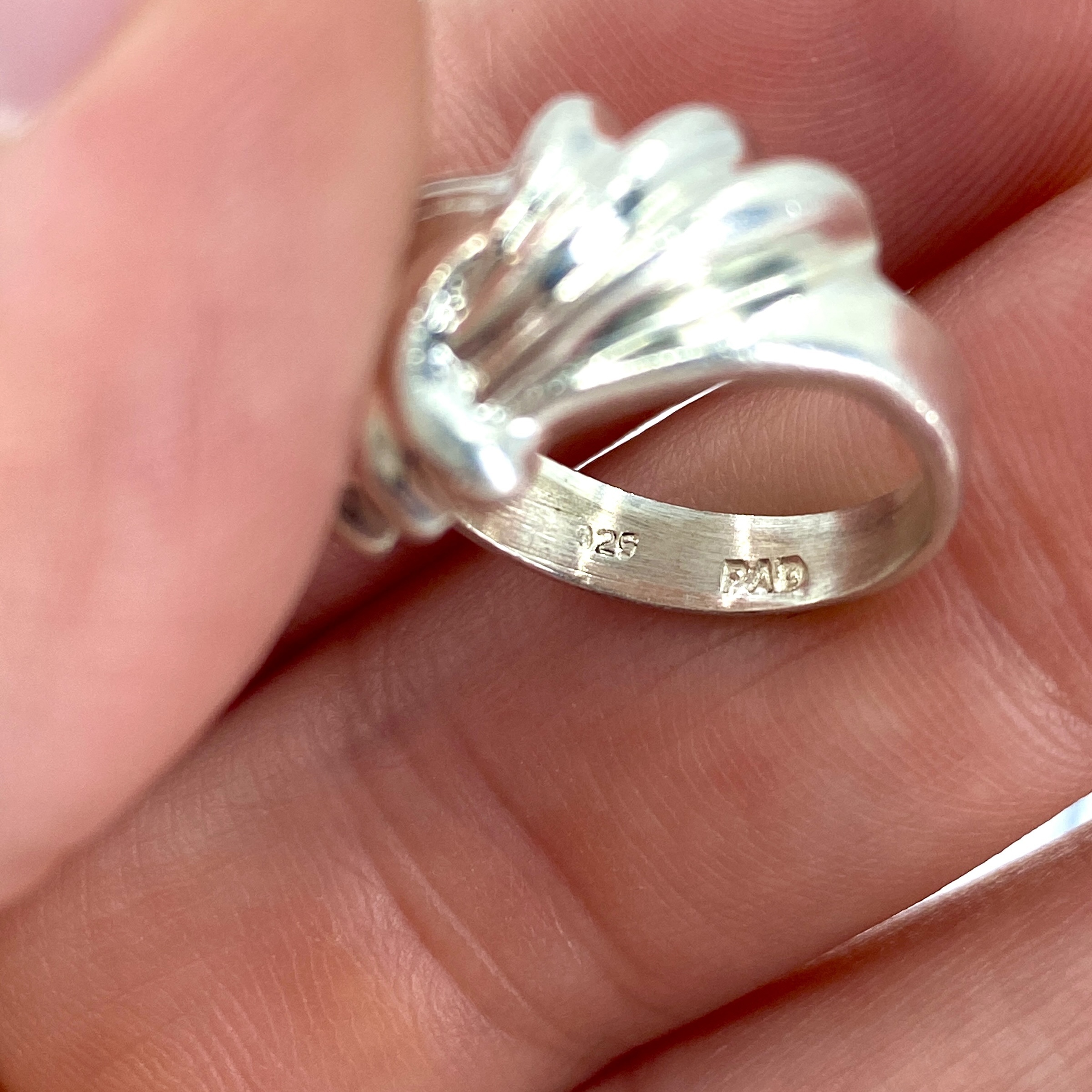 Fanned Sterling Silver Signed Ring, sz 5, 5.6g, Engraved “PAD 925”