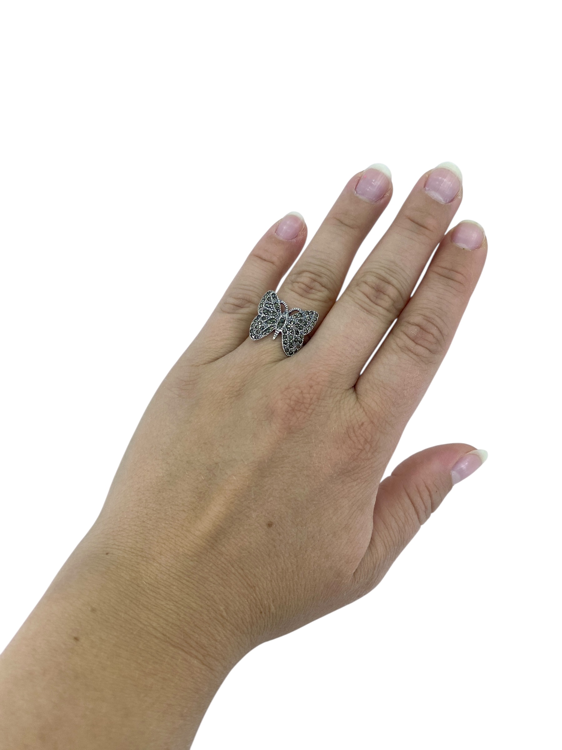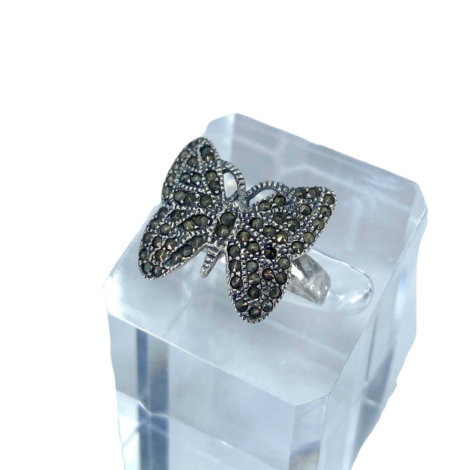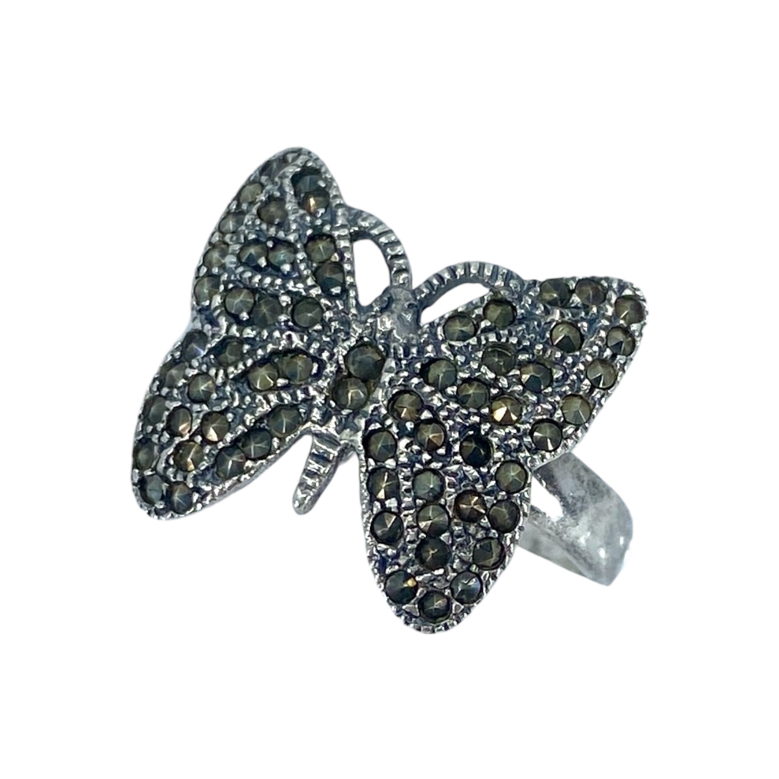 Cute Sterling Silver Marcasite Butterfly Ring, sz 6.75, 4.69g, engraved “925”