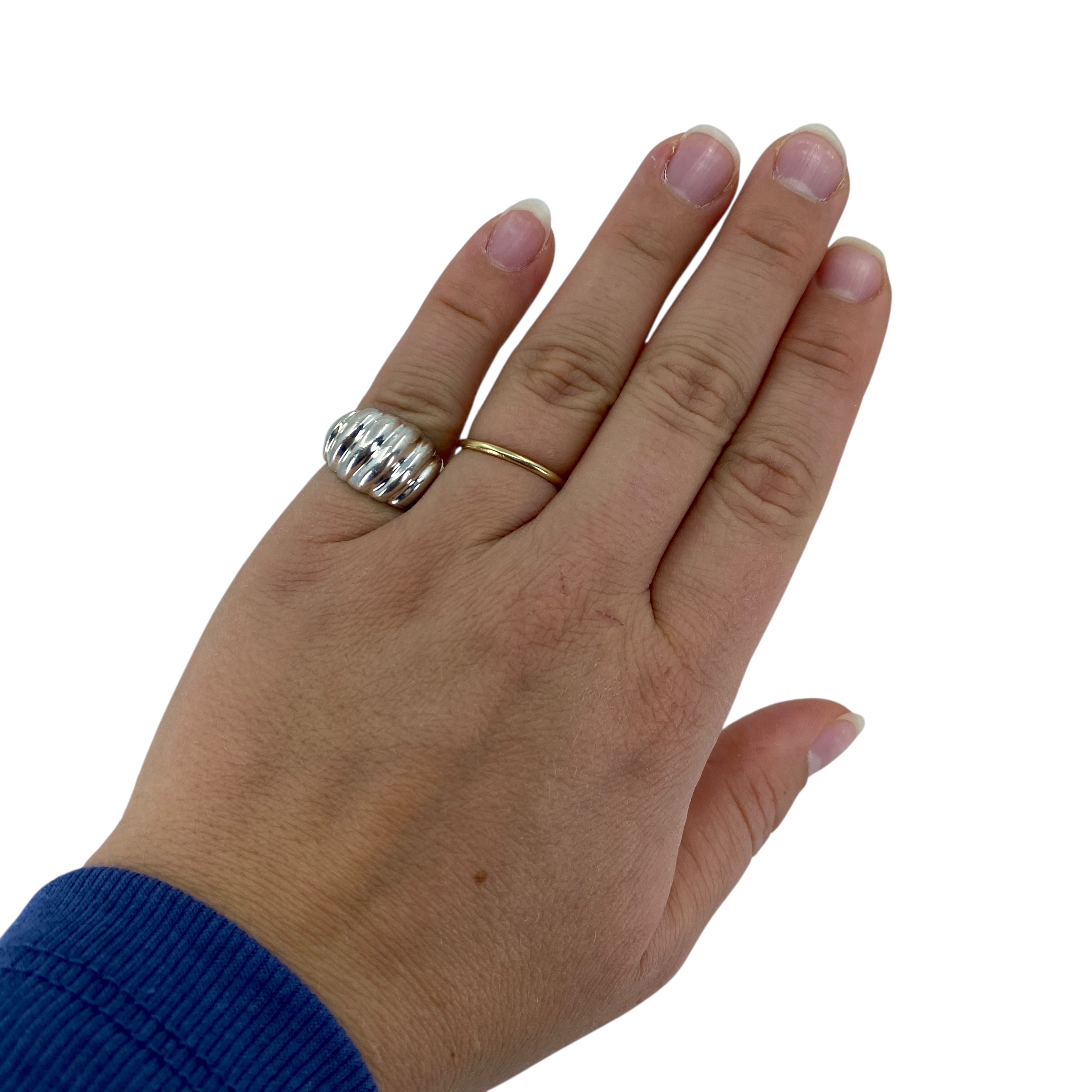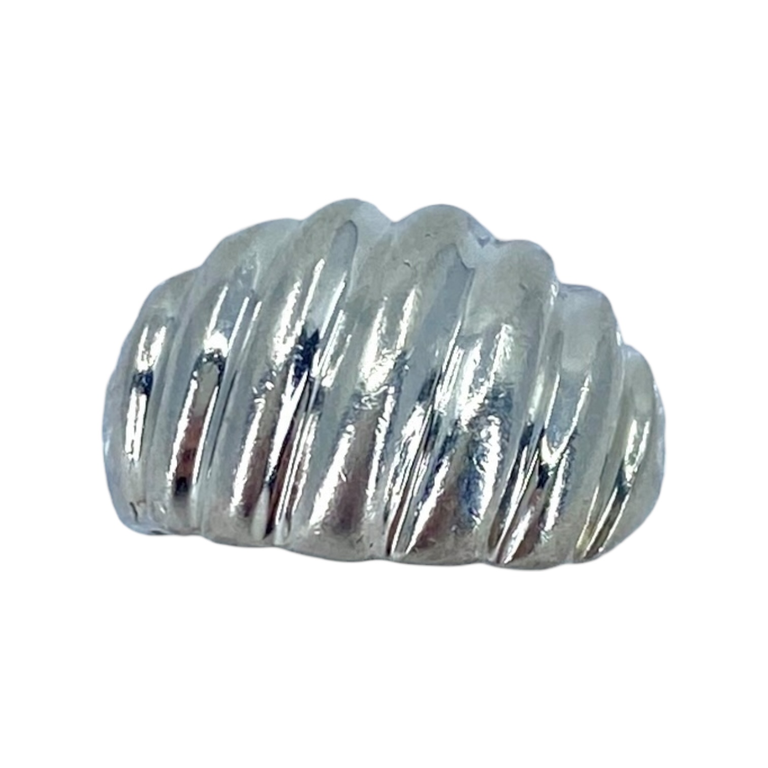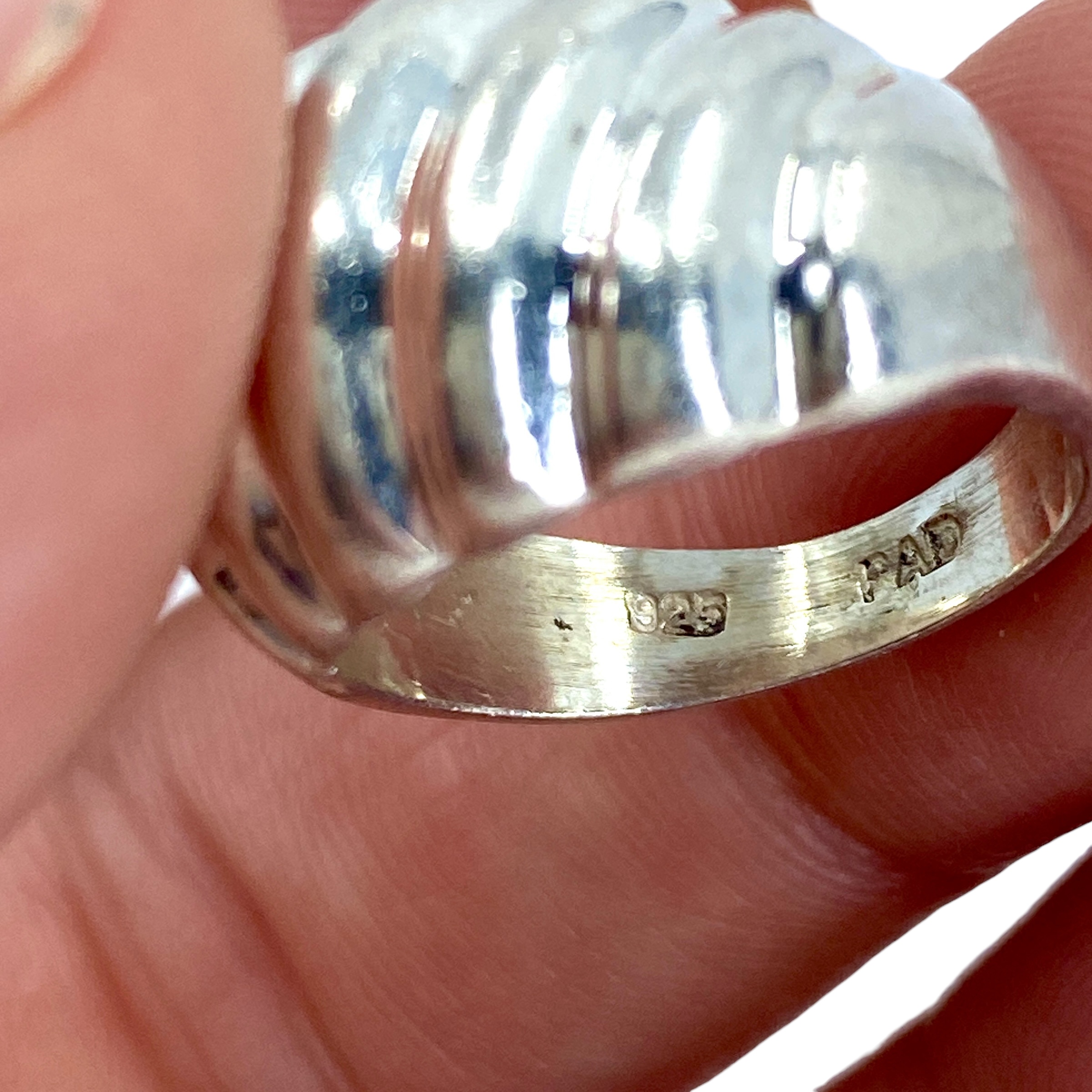 Puffy Ribbed Sterling Silver Signed Ring, sz 5, 6.77g, Engraved “925 PAD”