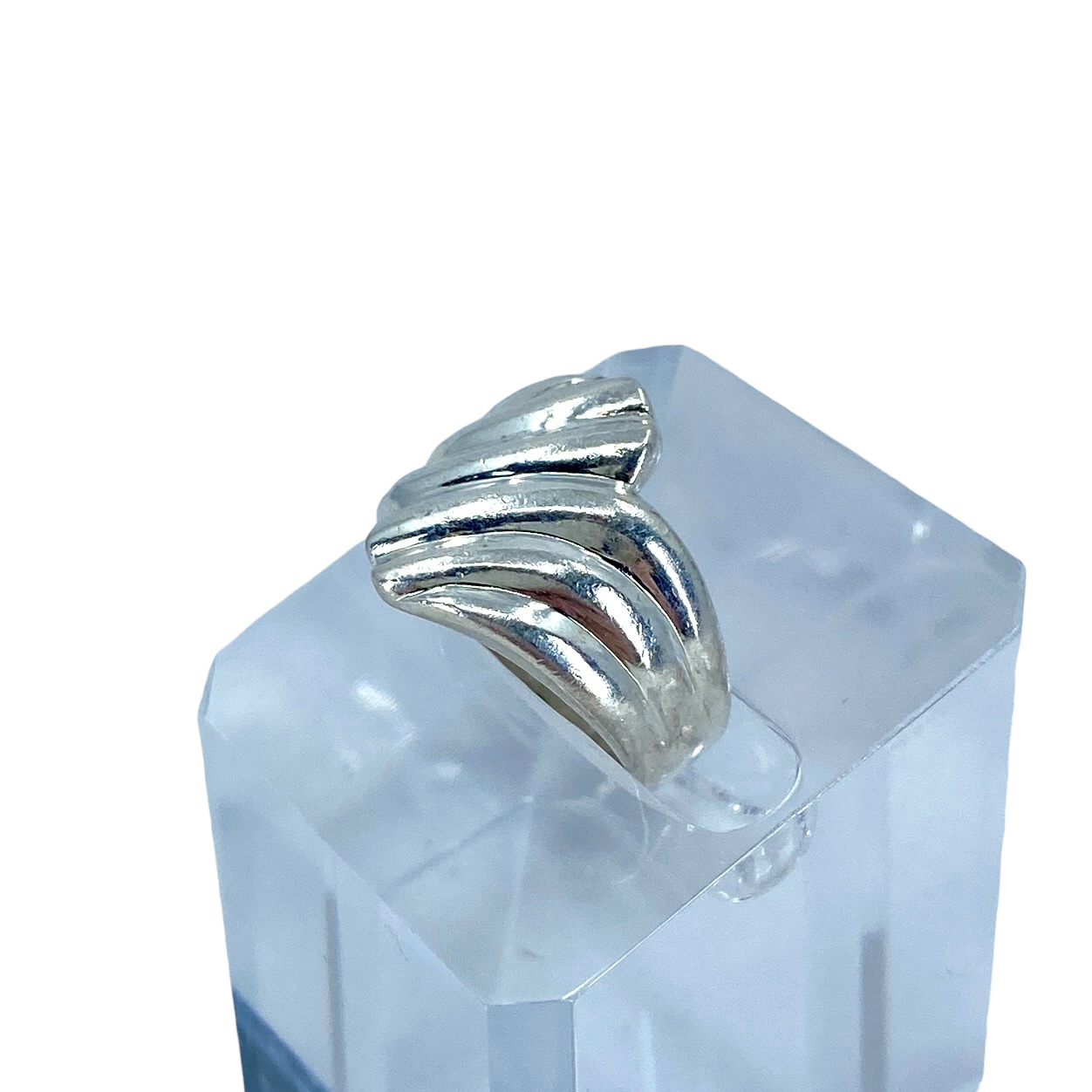 Simple Fanned Sterling Silver Signed Ring, sz 4.75, 4.53g, Engraved “PAD 925”