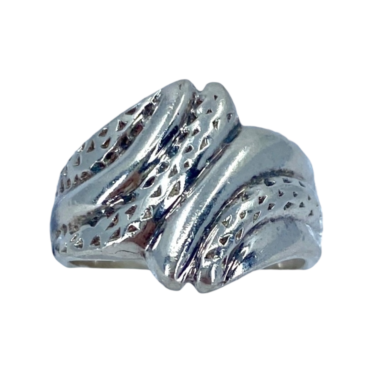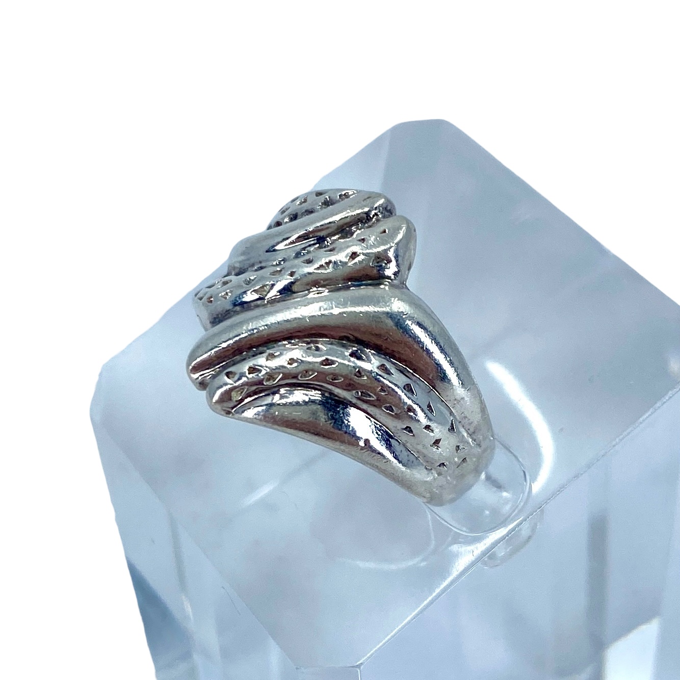 Hammered Fanned Sterling Silver Signed Ring, sz 6.5, 5.7g, Engraved “PAD 925”