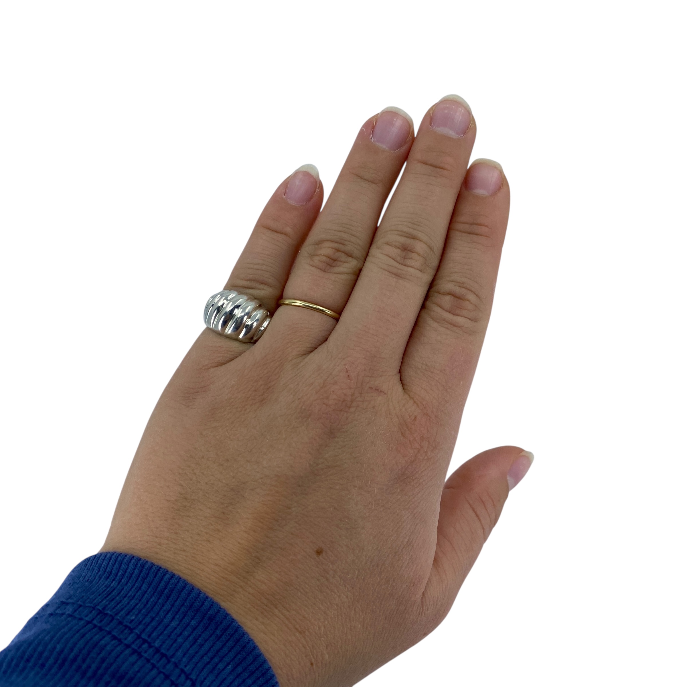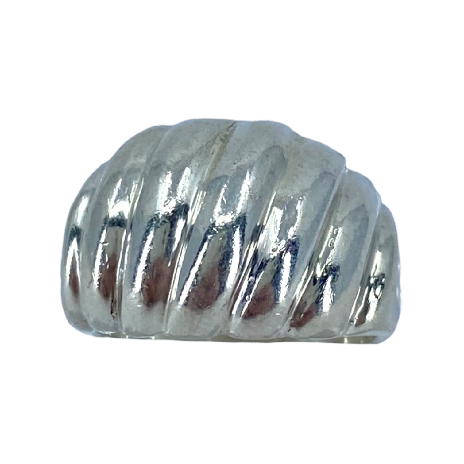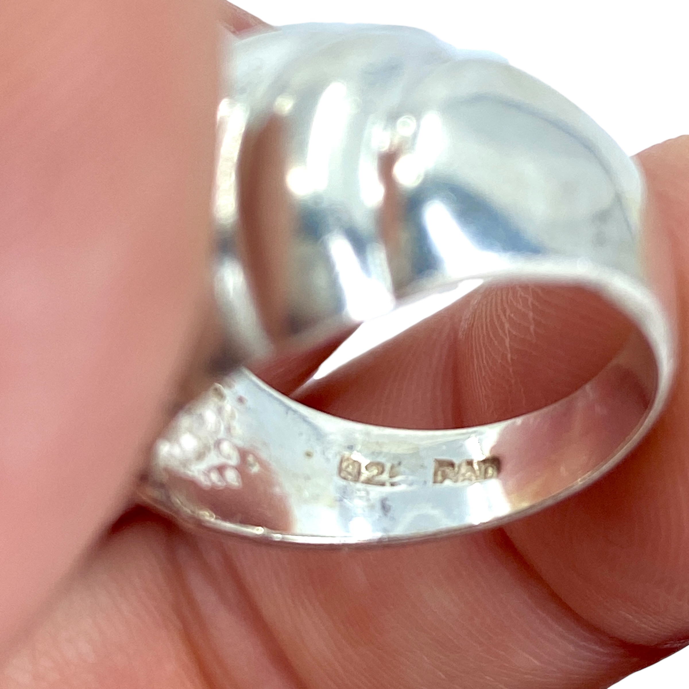 Domed Vertical Rib Sterling Silver Signed Ring, sz 4.75, 7.52g, Engraved “PAD 925”