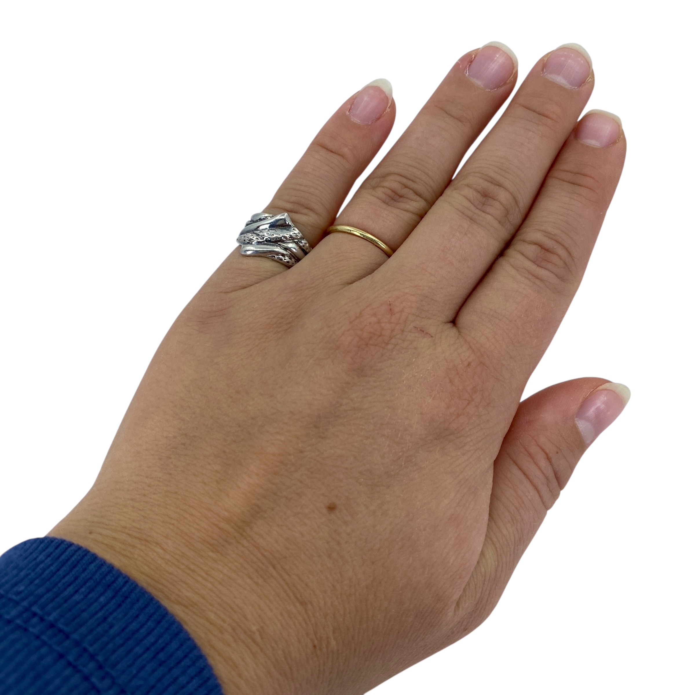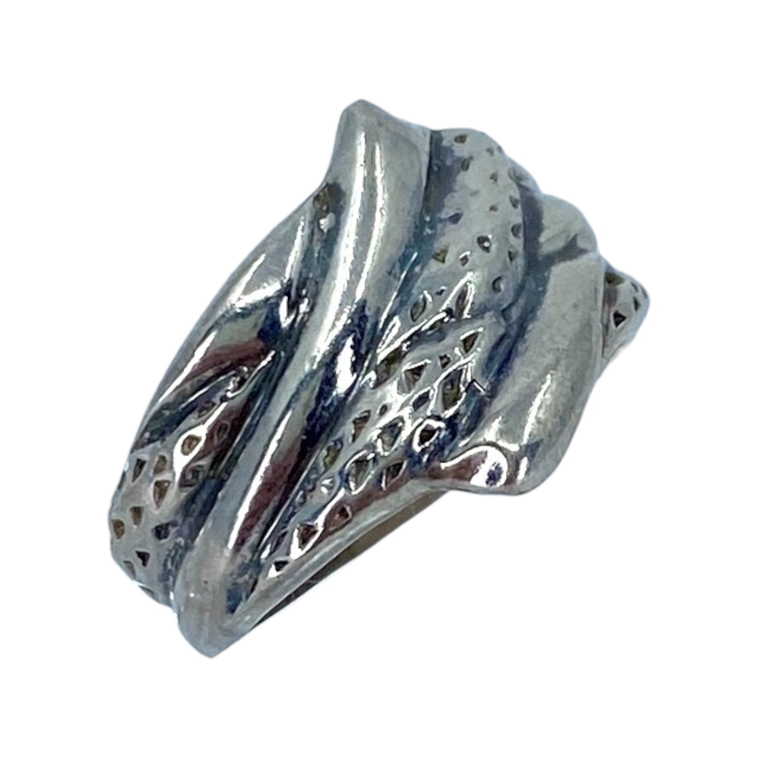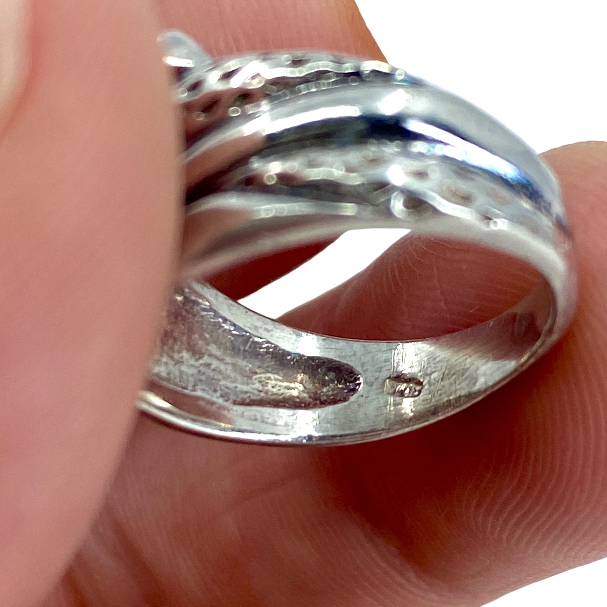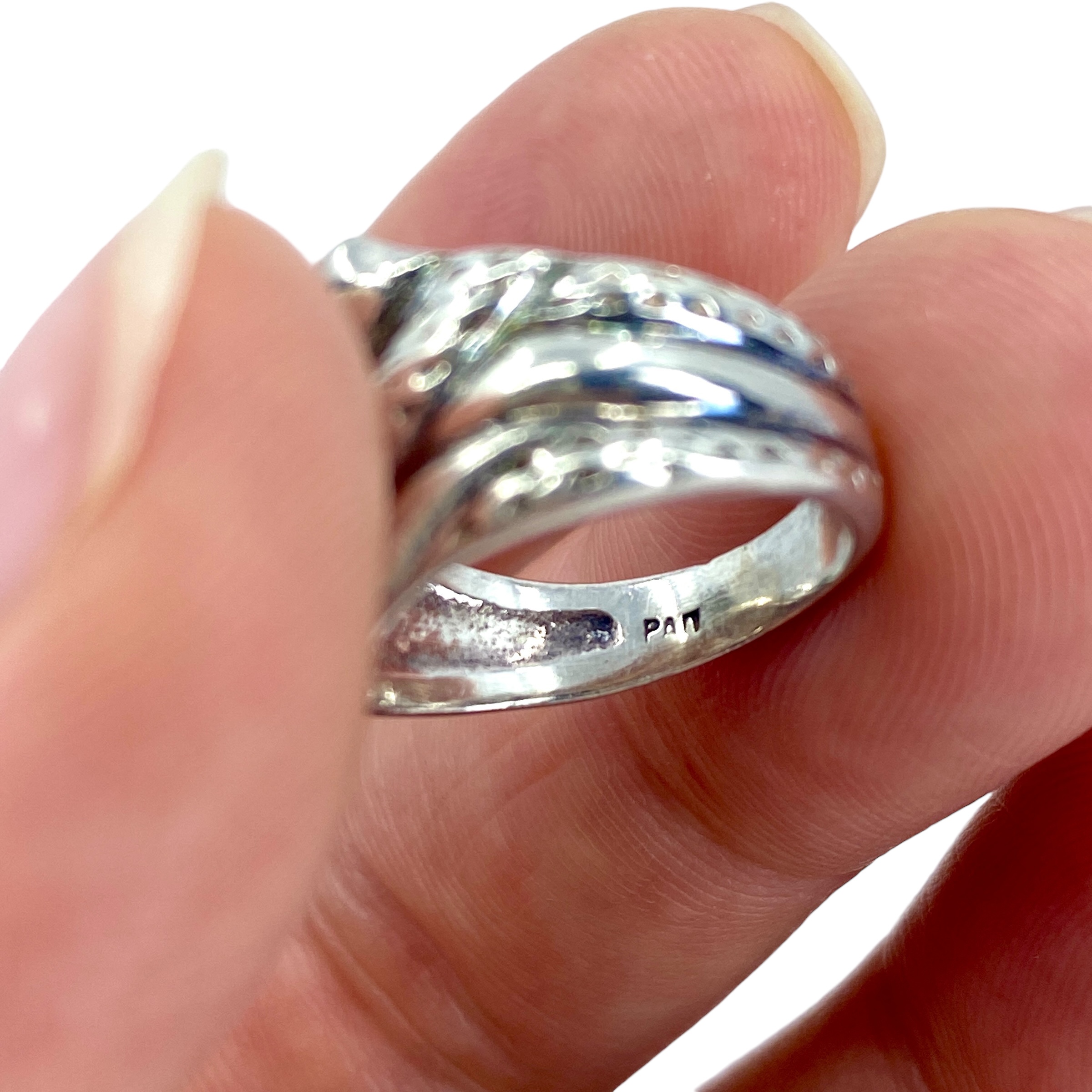 Hammered Crossover Ribbed Sterling Silver Signed Ring, sz 5, 3.45g, Engraved “PAD 925”