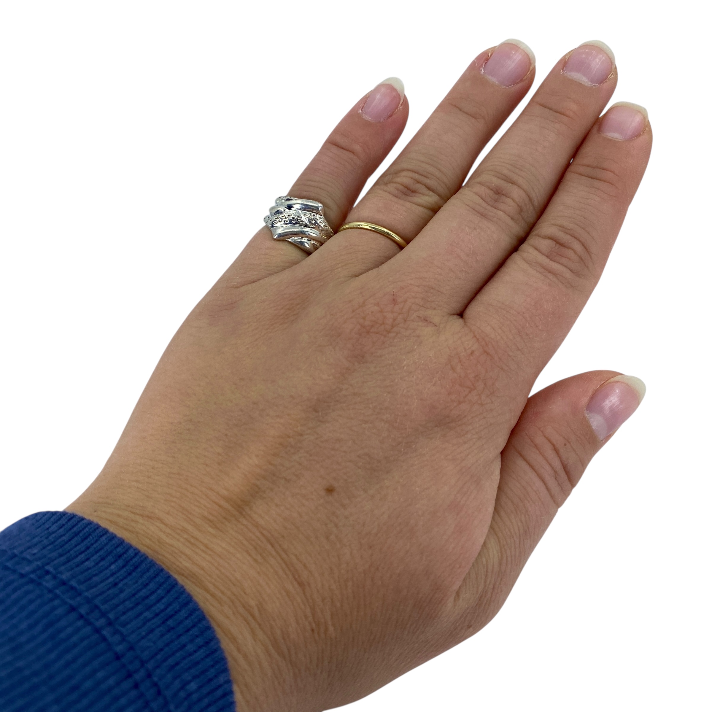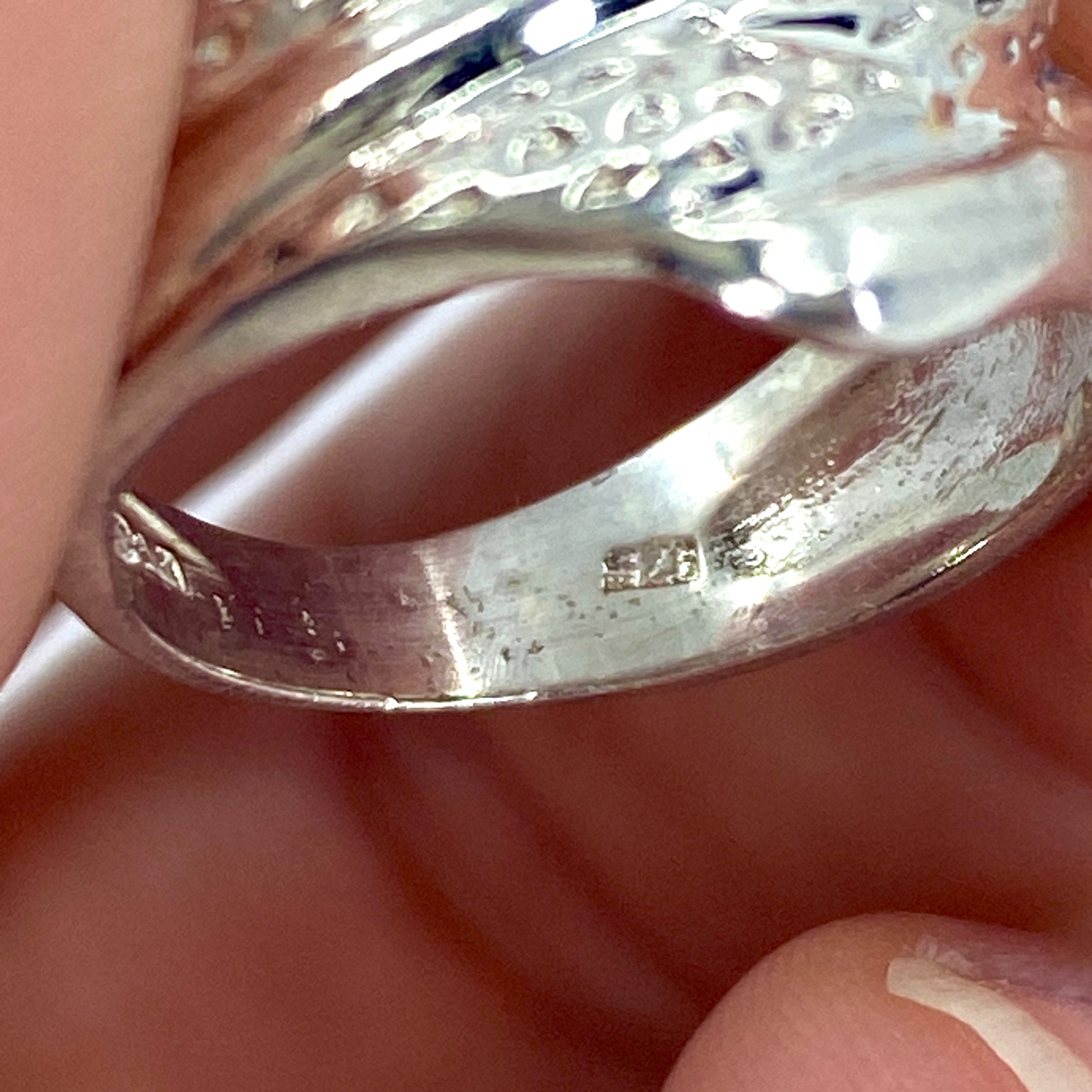 Hammered Crossover Ribbed Sterling Silver Signed Ring, sz 4.5, 3.34g, Engraved “PAD 925”