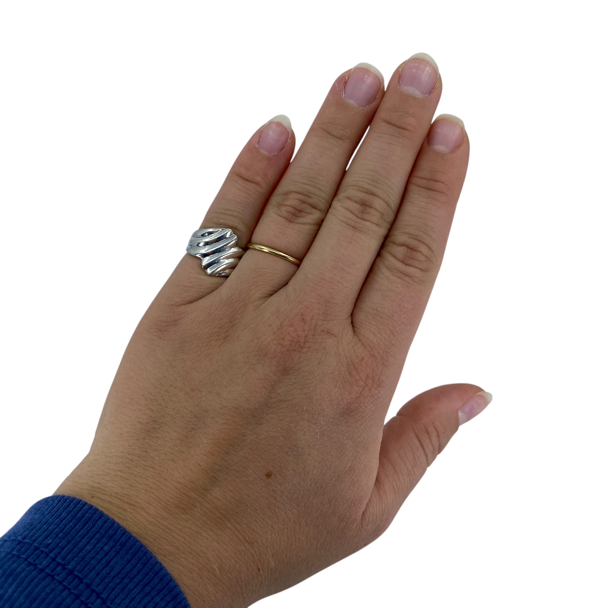 Simple Fanned Sterling Silver Signed Ring, sz 4.75, 3.9g, Engraved “PAD 925”