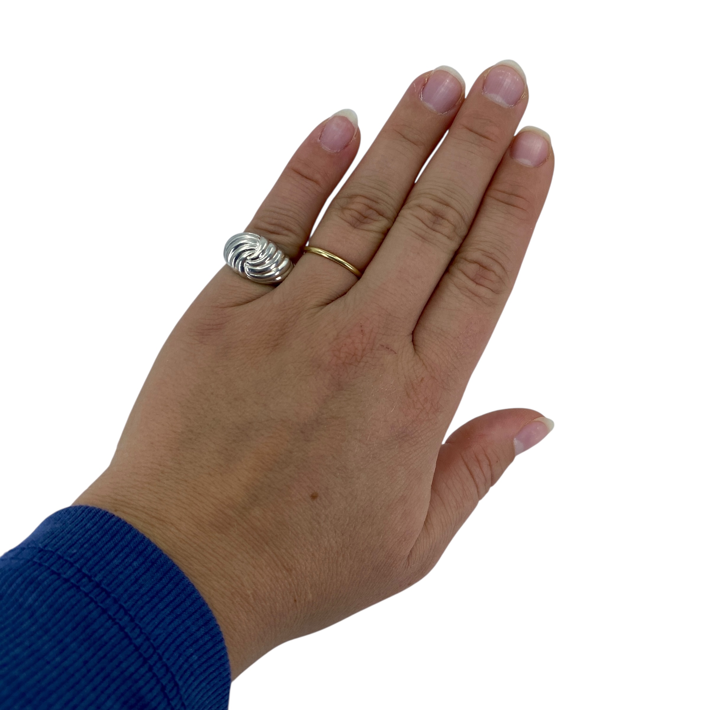 Modernist Ribbed Sterling Silver Signed Ring, sz 5, 5.88g, Engraved “925 PAD”