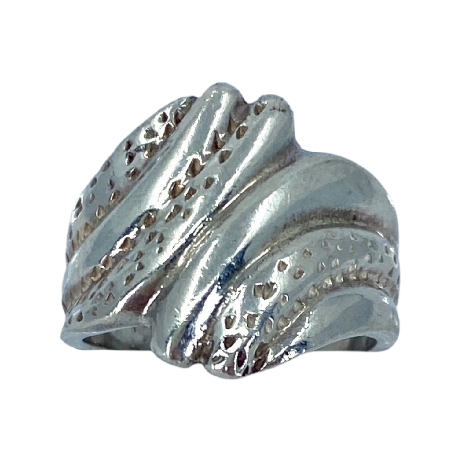 Hammered Fanned Sterling Silver Signed Ring, sz 5.25, 4.82g, Engraved “PAD 925”