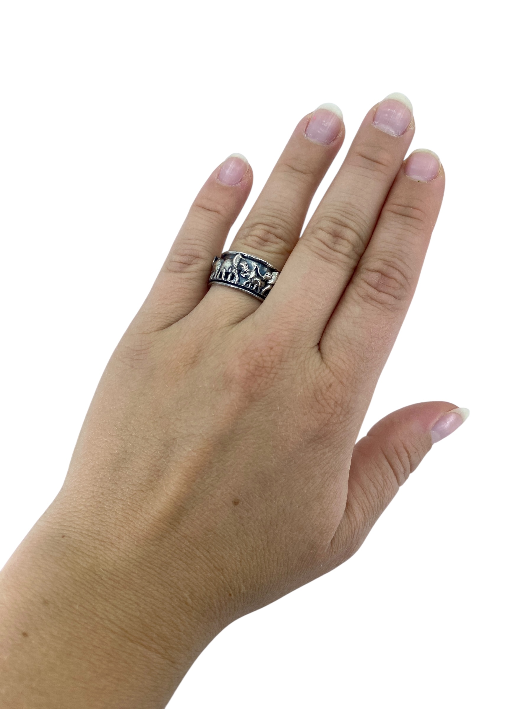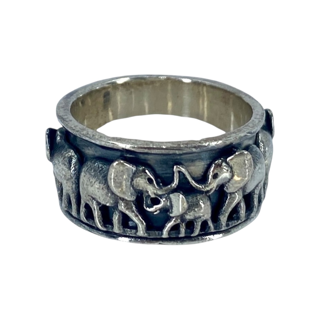 Unique Elephant Sterling Silver Spinner Ring, sz 8.75, 9.87g, engraved “925”