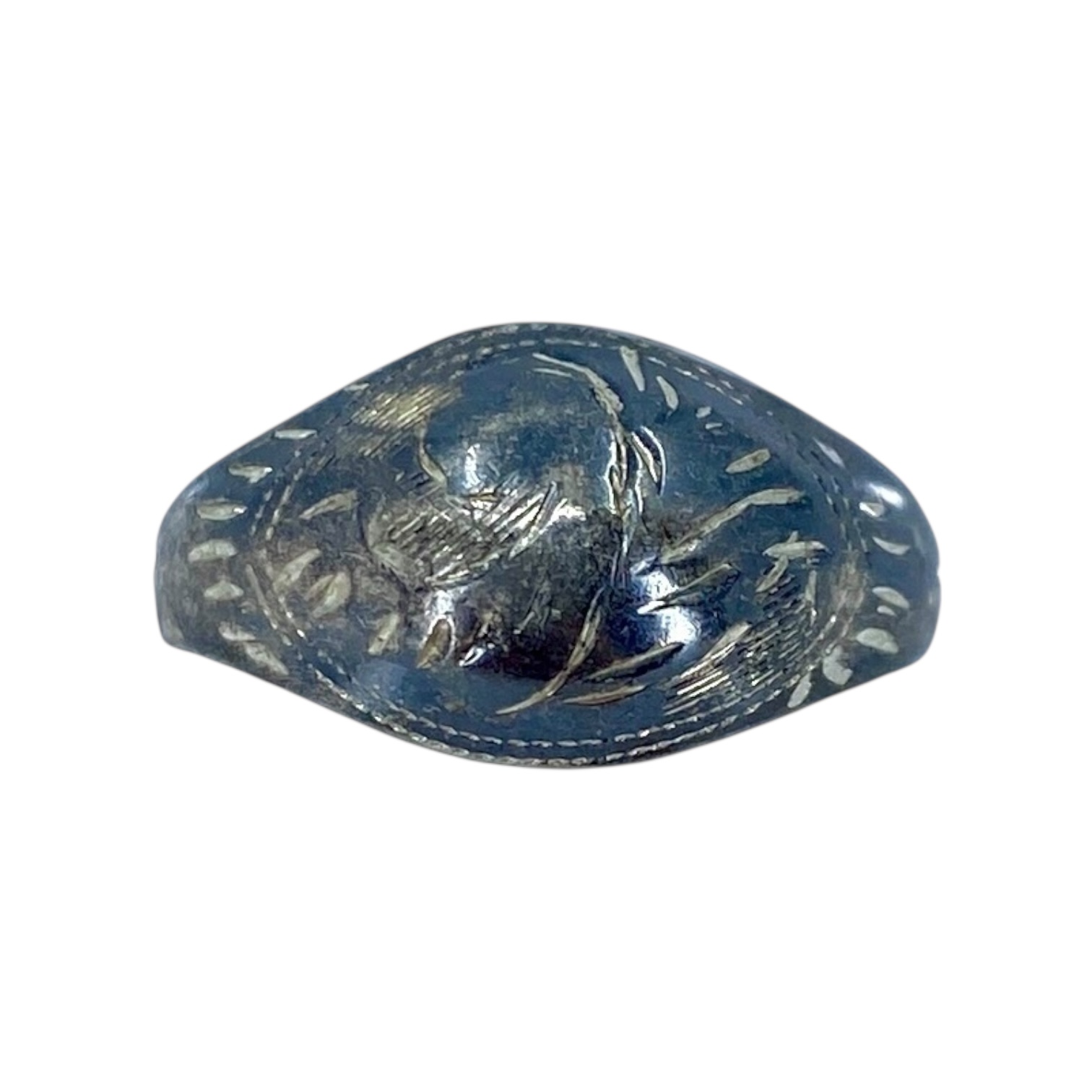 Beautifully Etched Sterling Silver Signed Dome Ring, sz 6.75, 1.64g, Engraved “925 PAD”