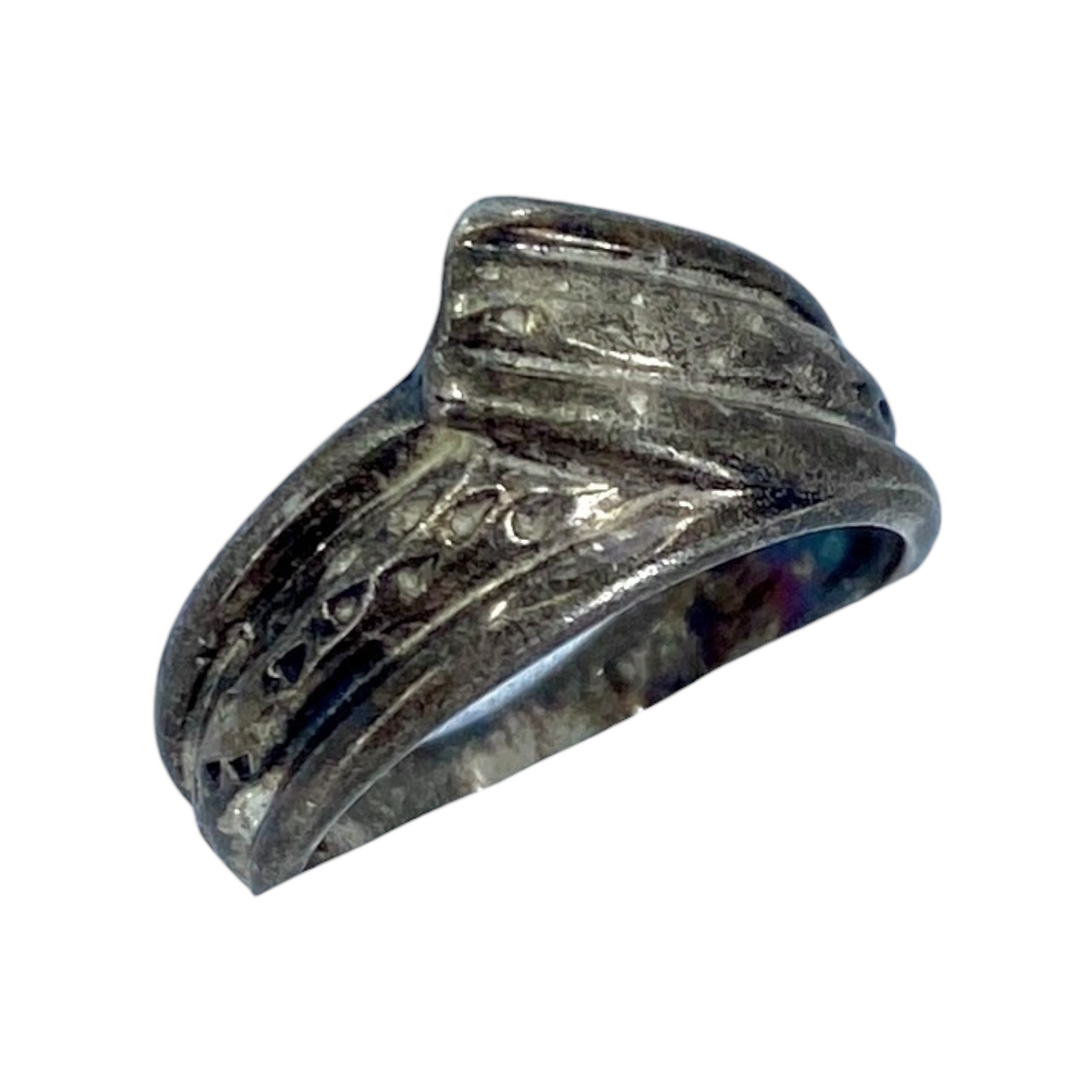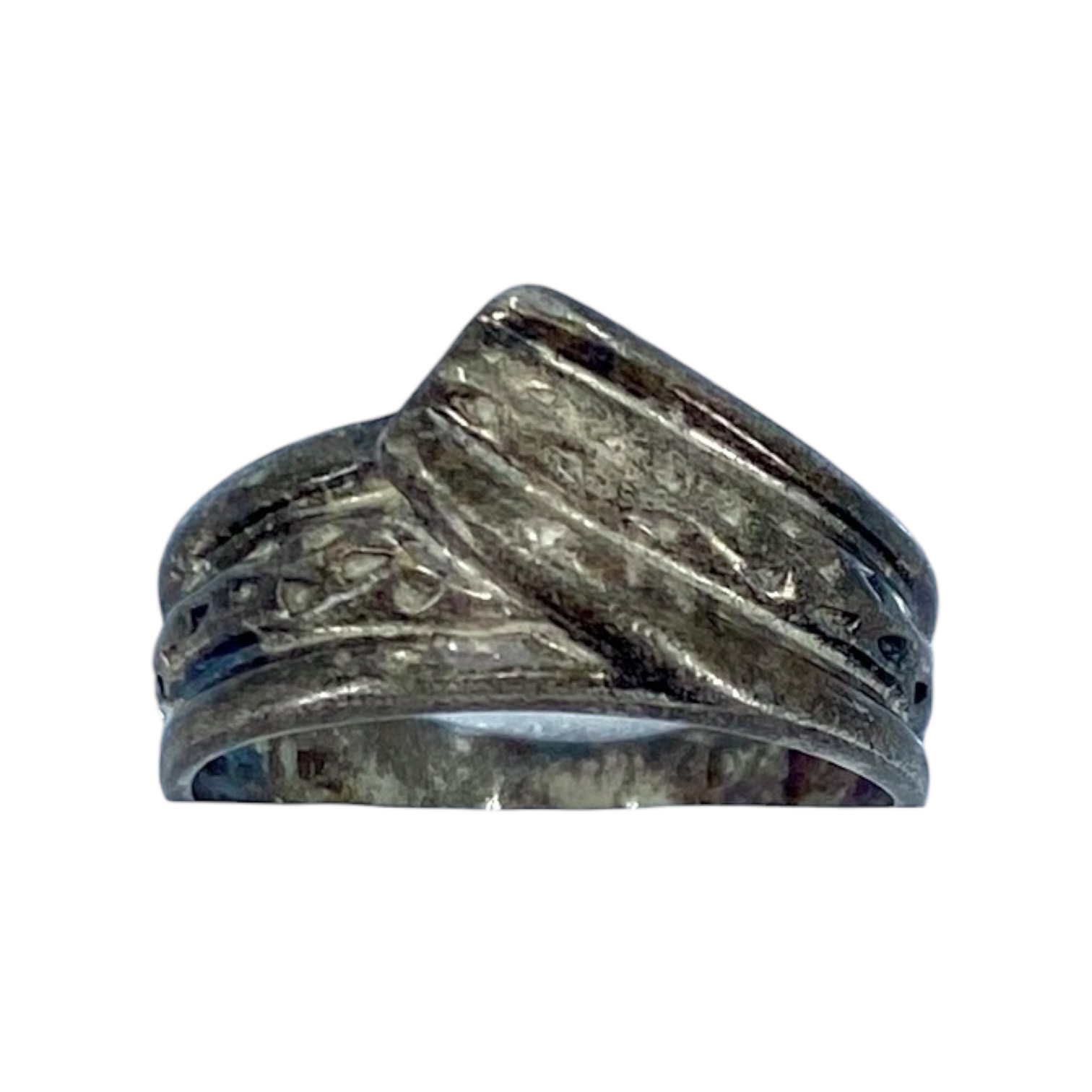 Modern Hammered Rib Sterling Silver Signed Ring, sz 5, 3.22g, Engraved “PAD 925”
