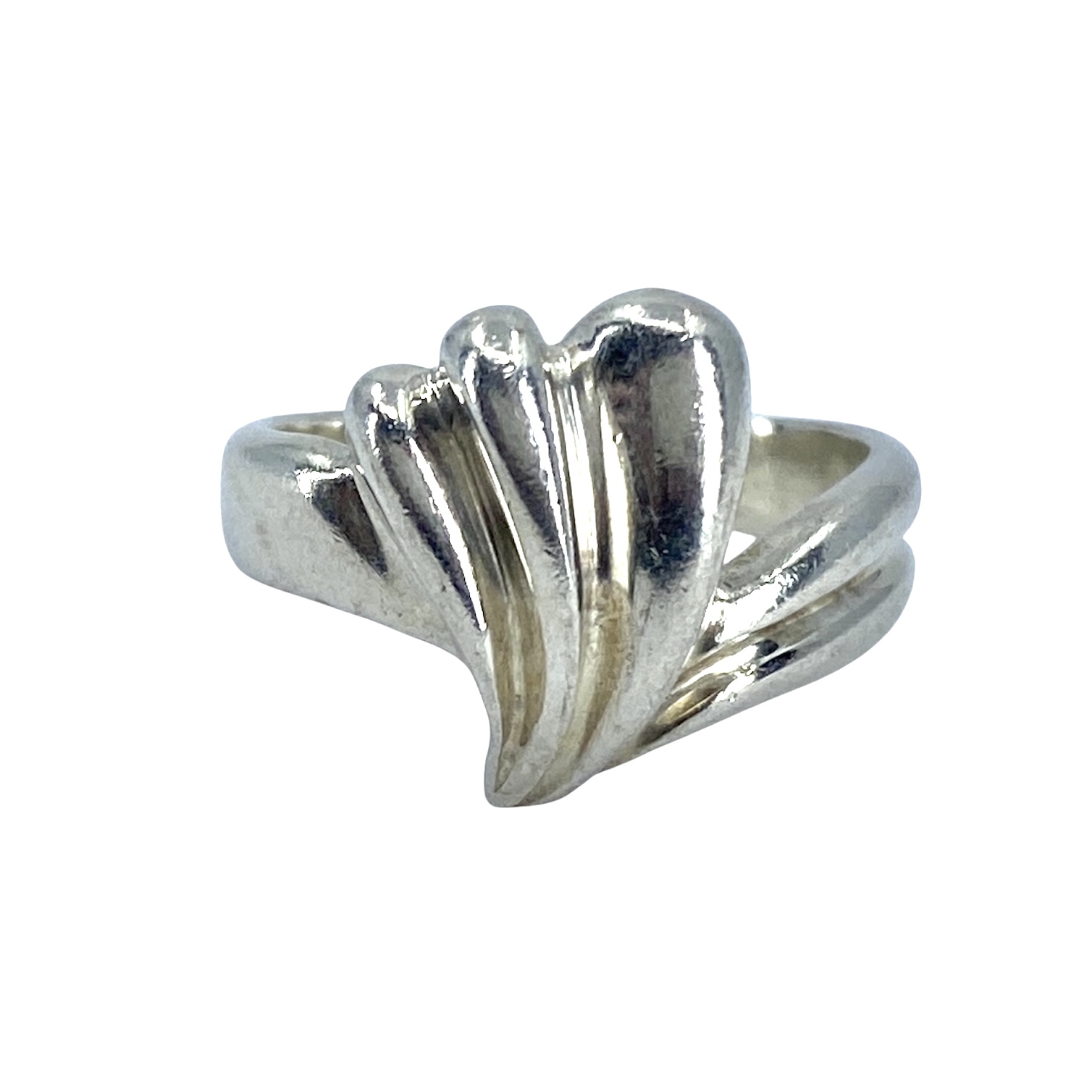 Interesting Fan Ribbed Sterling Silver Ring, sz 5.75, 2.61g