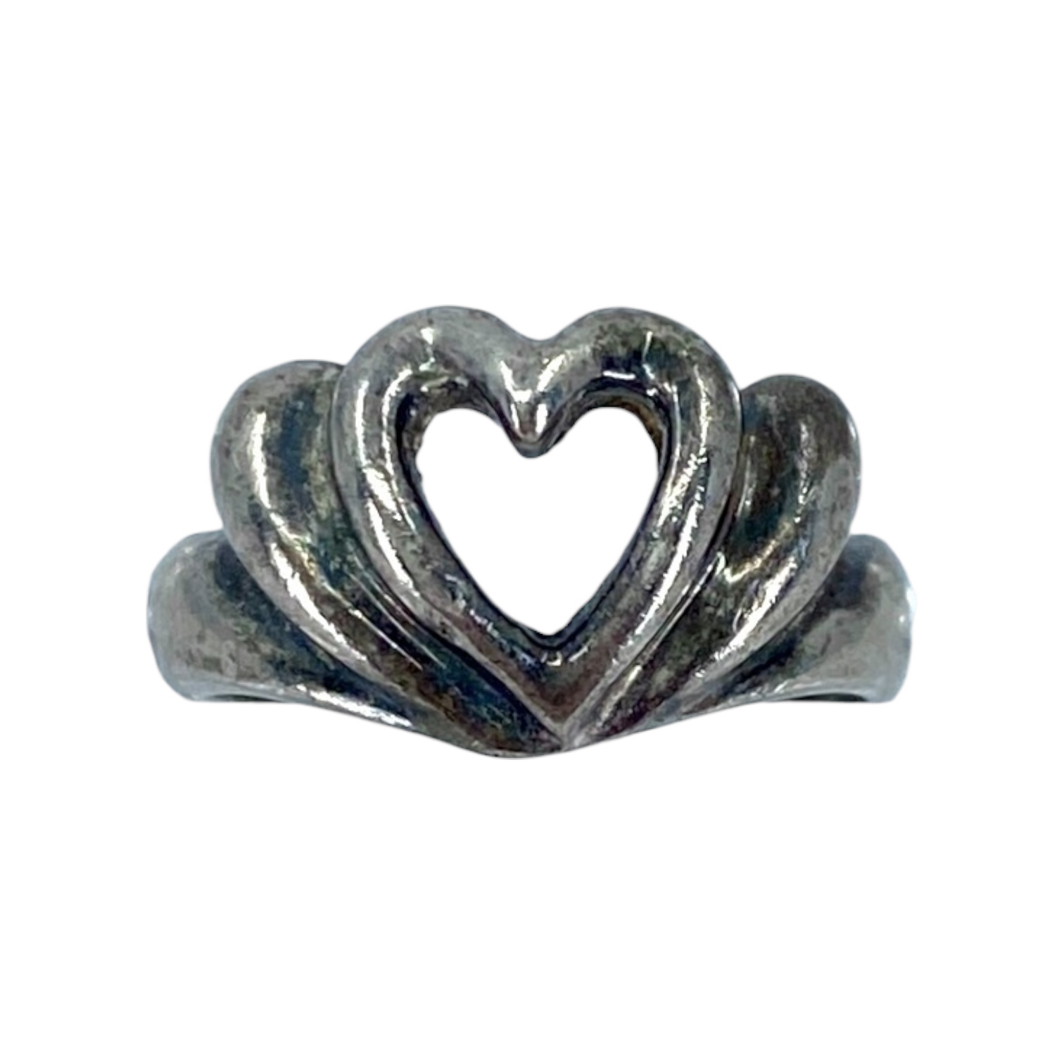 Cute Echo Heart Sterling Silver Ring, sz 5, 3.01g, Engraved “925”