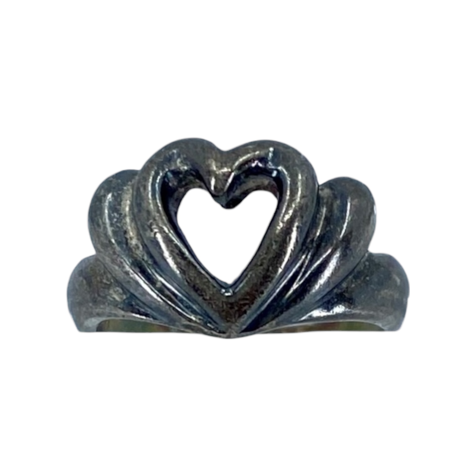 Cute Sterling Silver Echo Heart Ring, sz 4.75, 3.5g, Engraved “925”