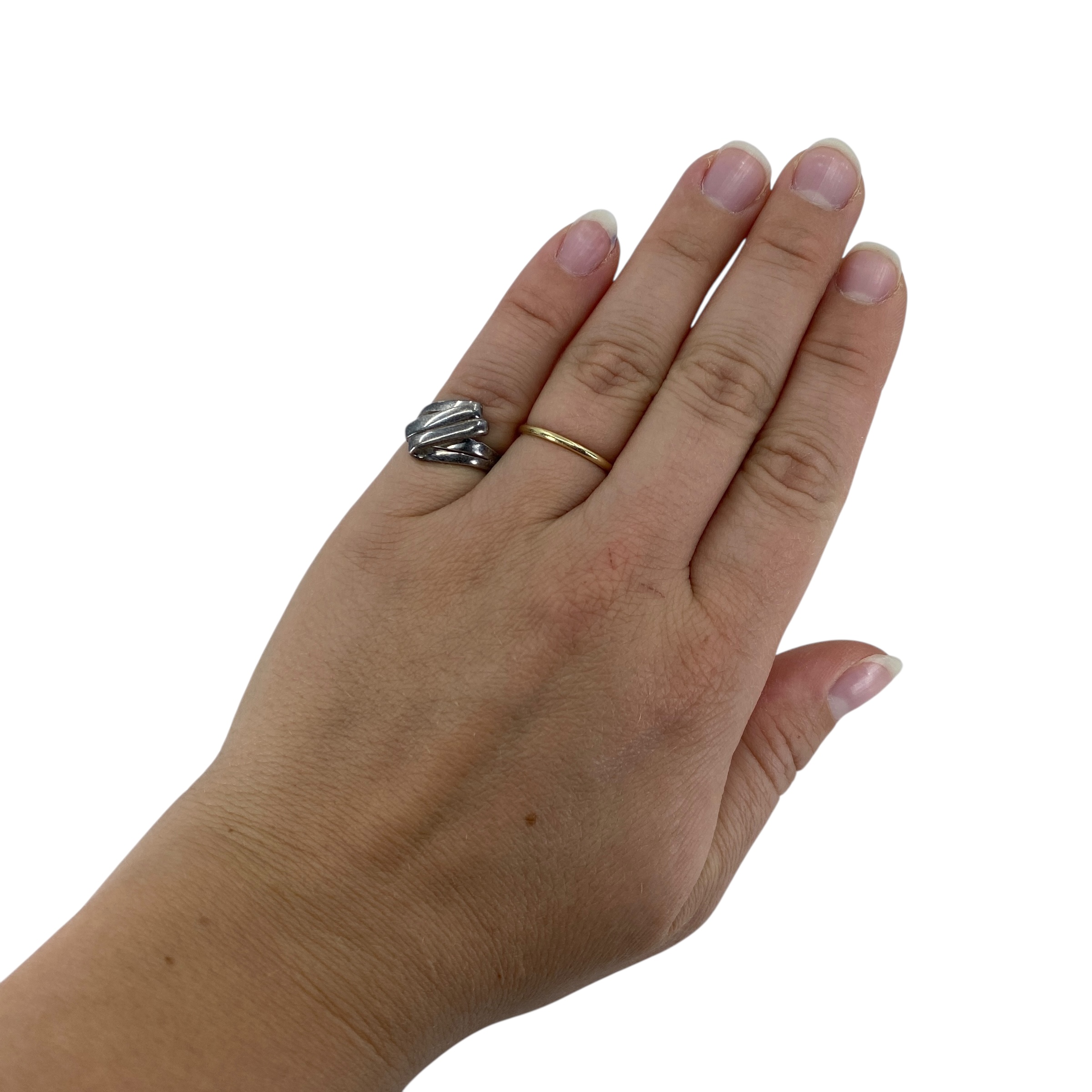 Geometric Sterling Silver Signed Ring, sz 4.75, 3.71g