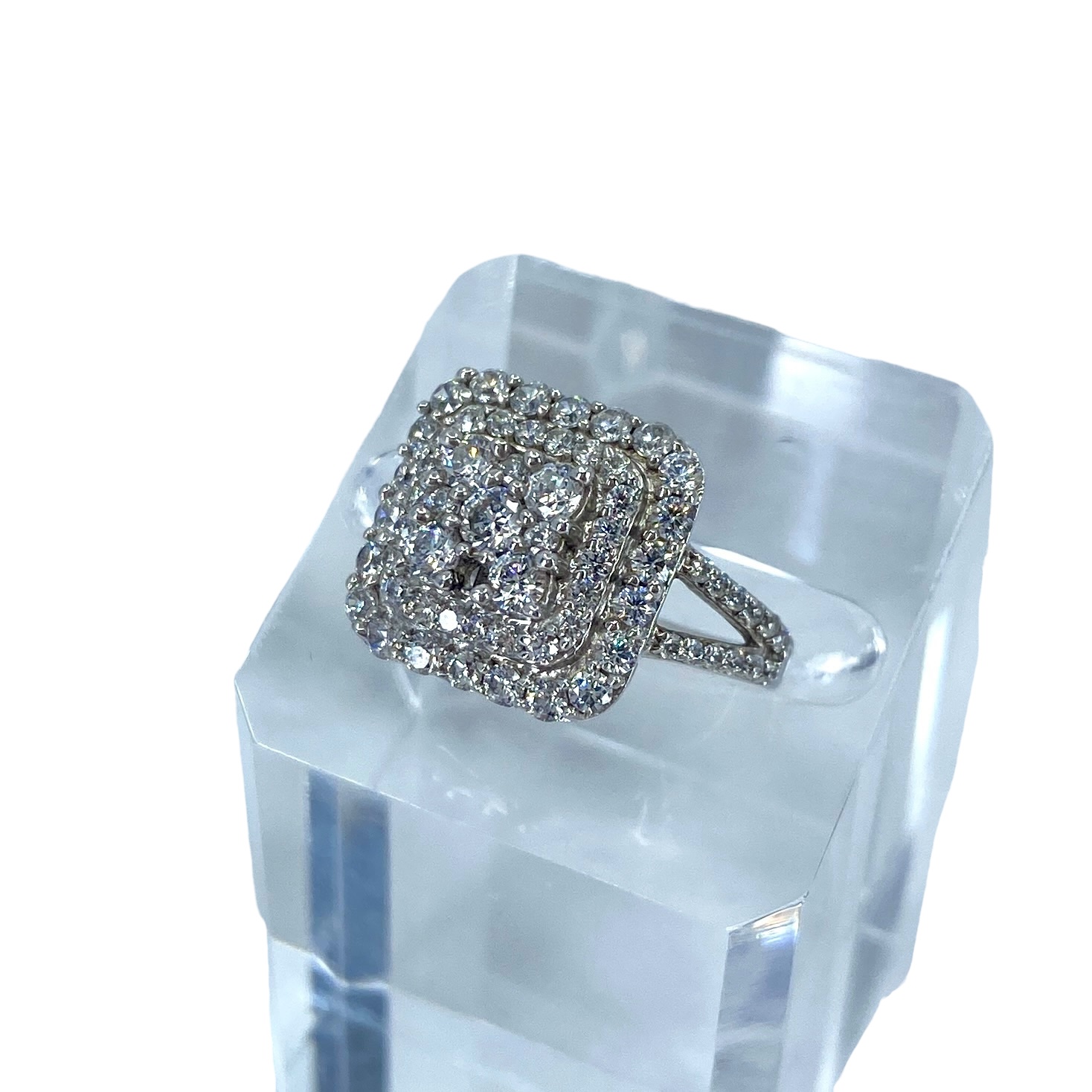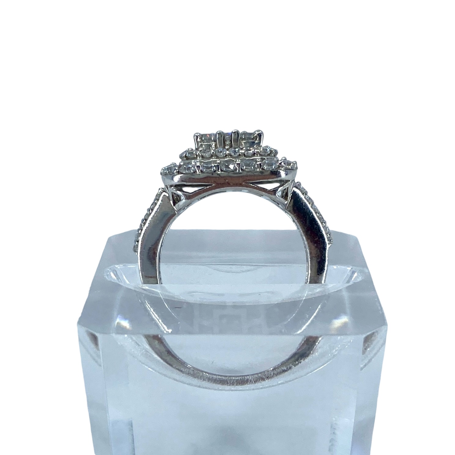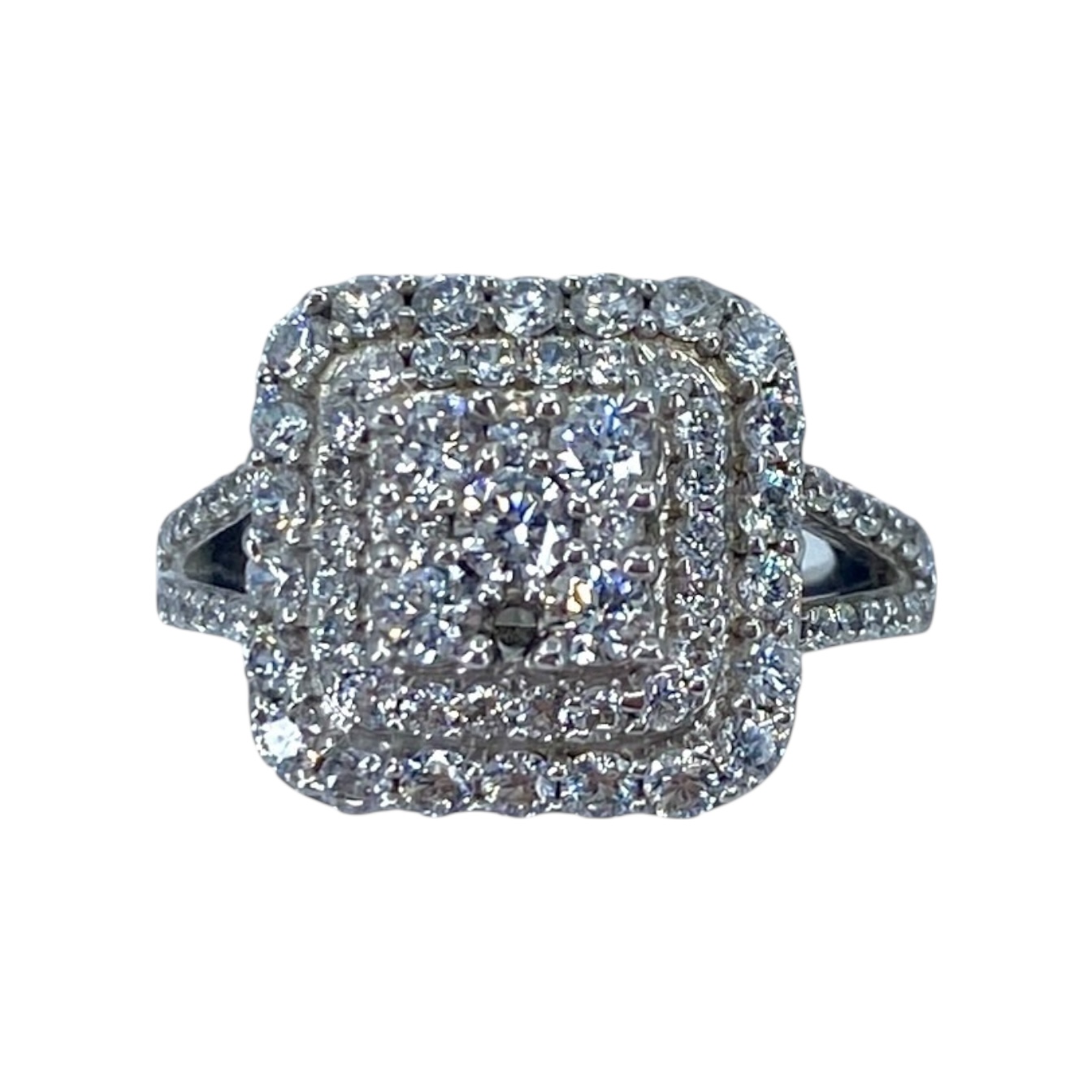 Sparkling SJ Signed Rhinestone Cluster Halo Sterling Silver Cocktail Ring with missing stone, sz 5.75, 4.91g, Engraved “SJ 925”