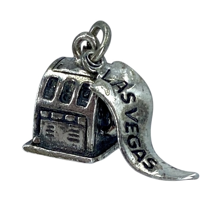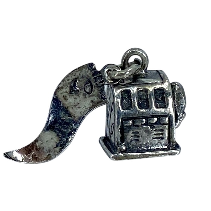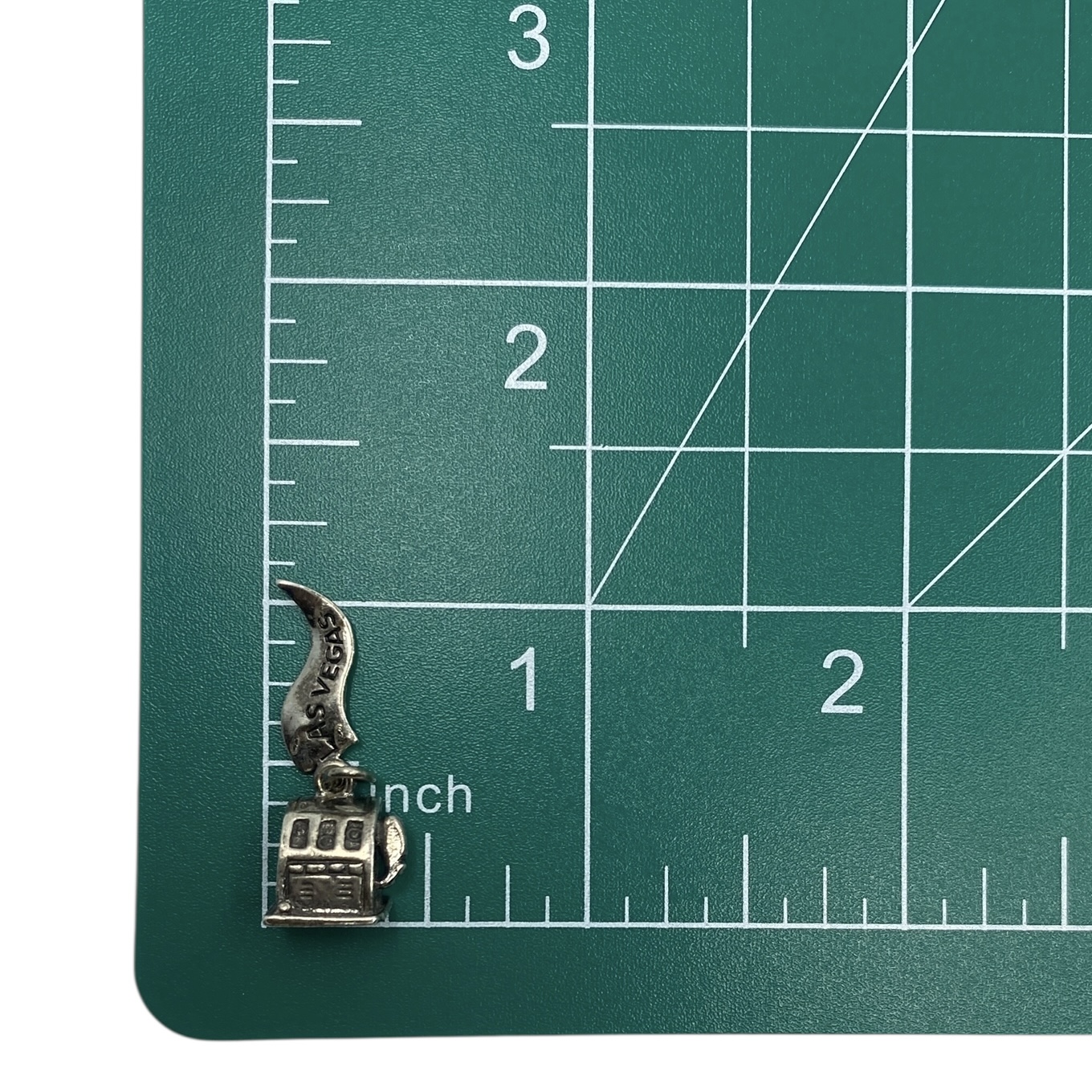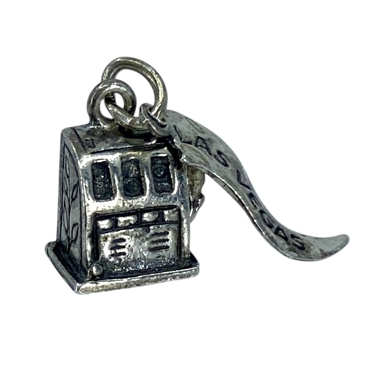 Vintage Engraved Las Vegas Slot Machine Sterling Silver Signed Charm, 2.07g, Engraved “Sterling Co.”