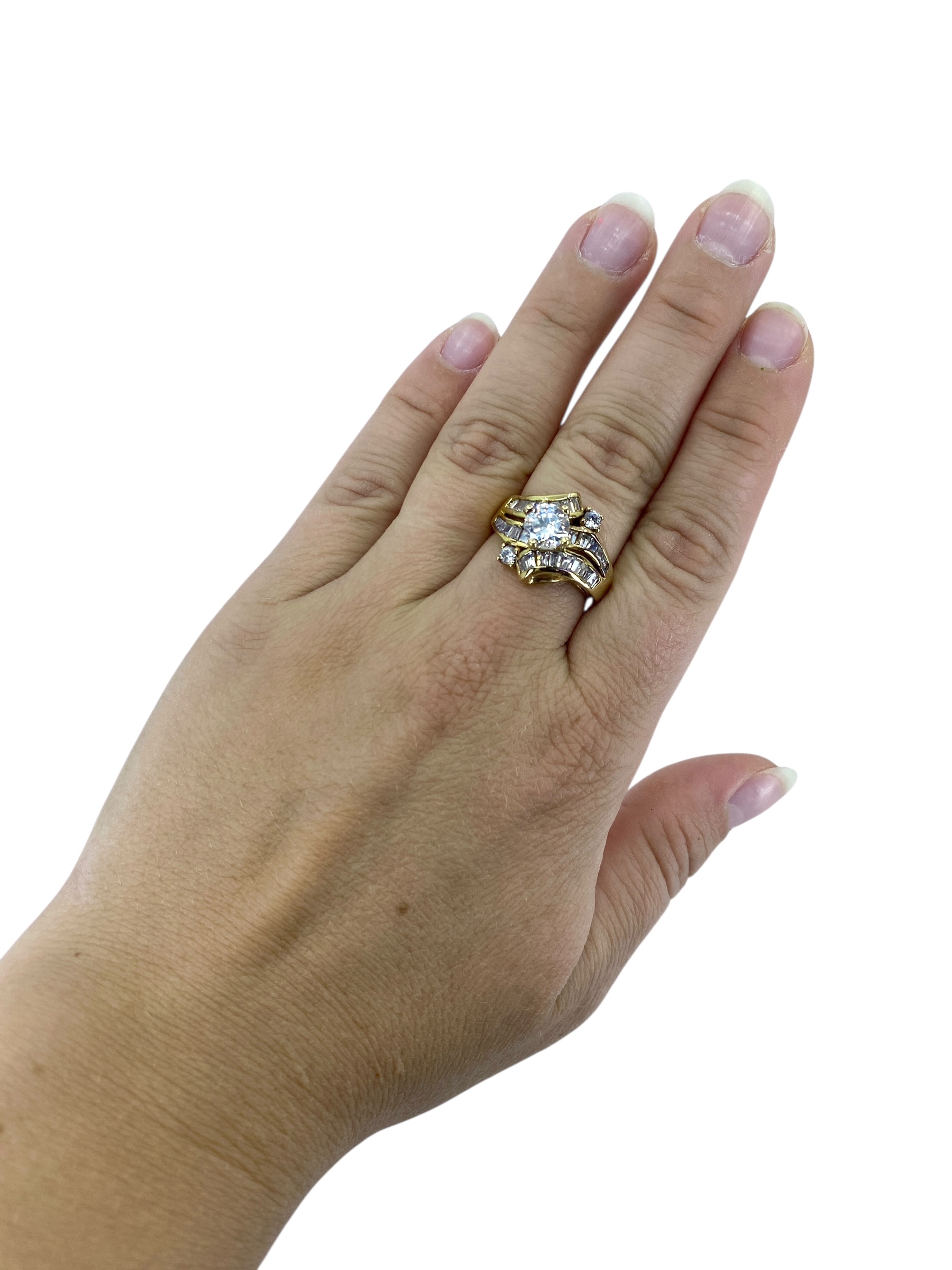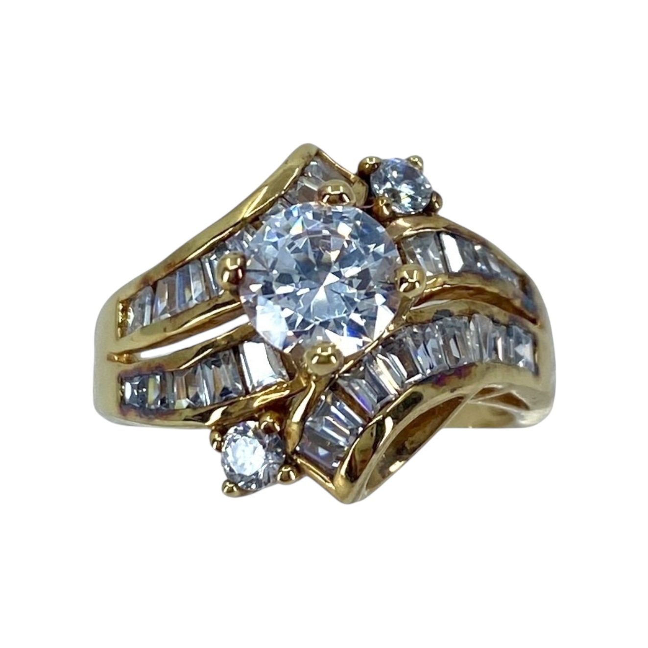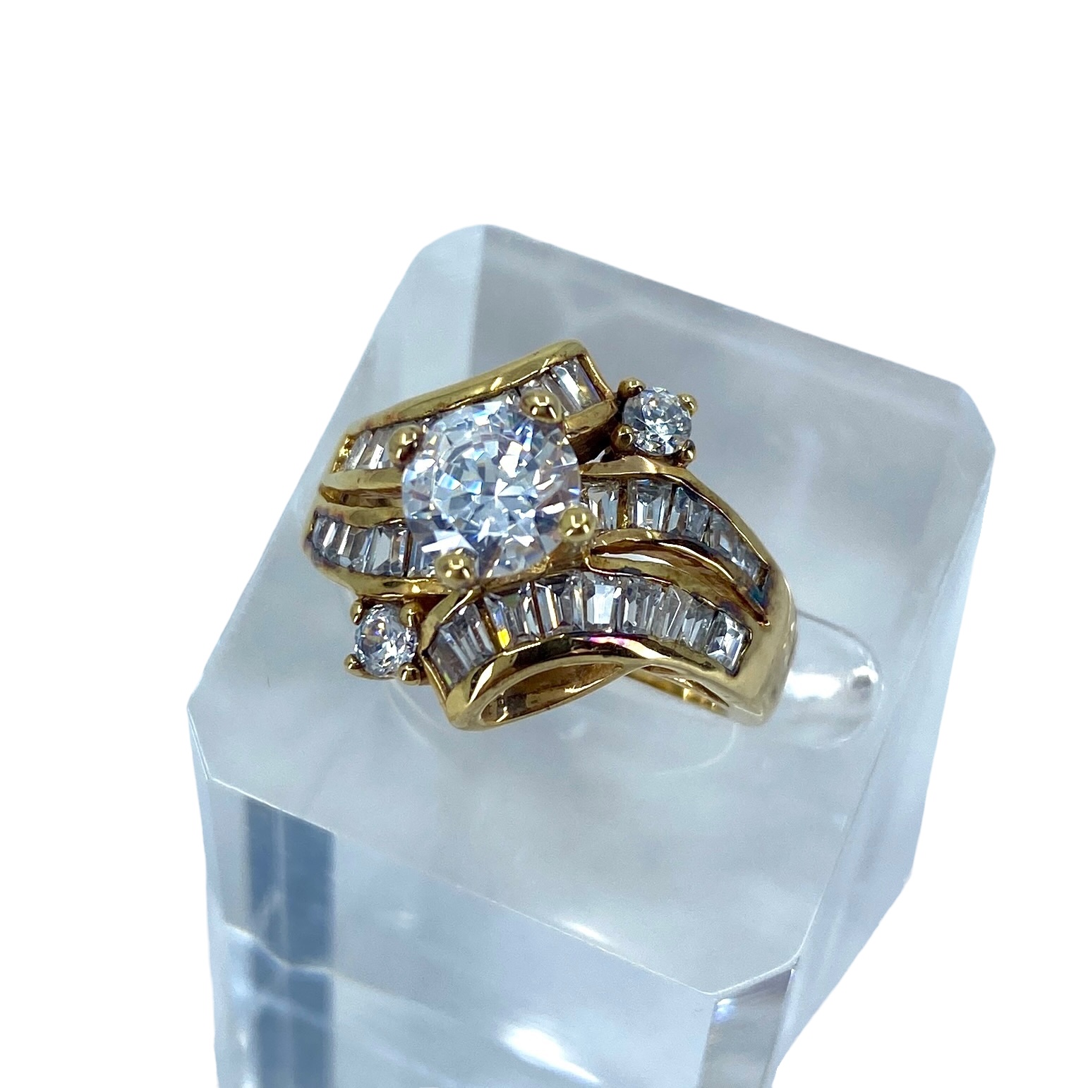 Sparkling ADI Cubic Zirconia Gold Over Sterling Silver Cocktail Ring, sz 8.75, 7.74g, Engraved “Thai CZ 925 ADI”