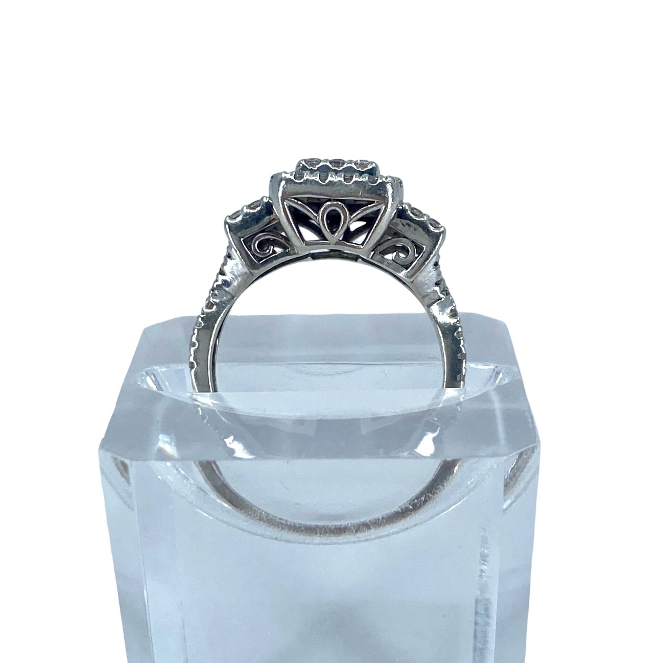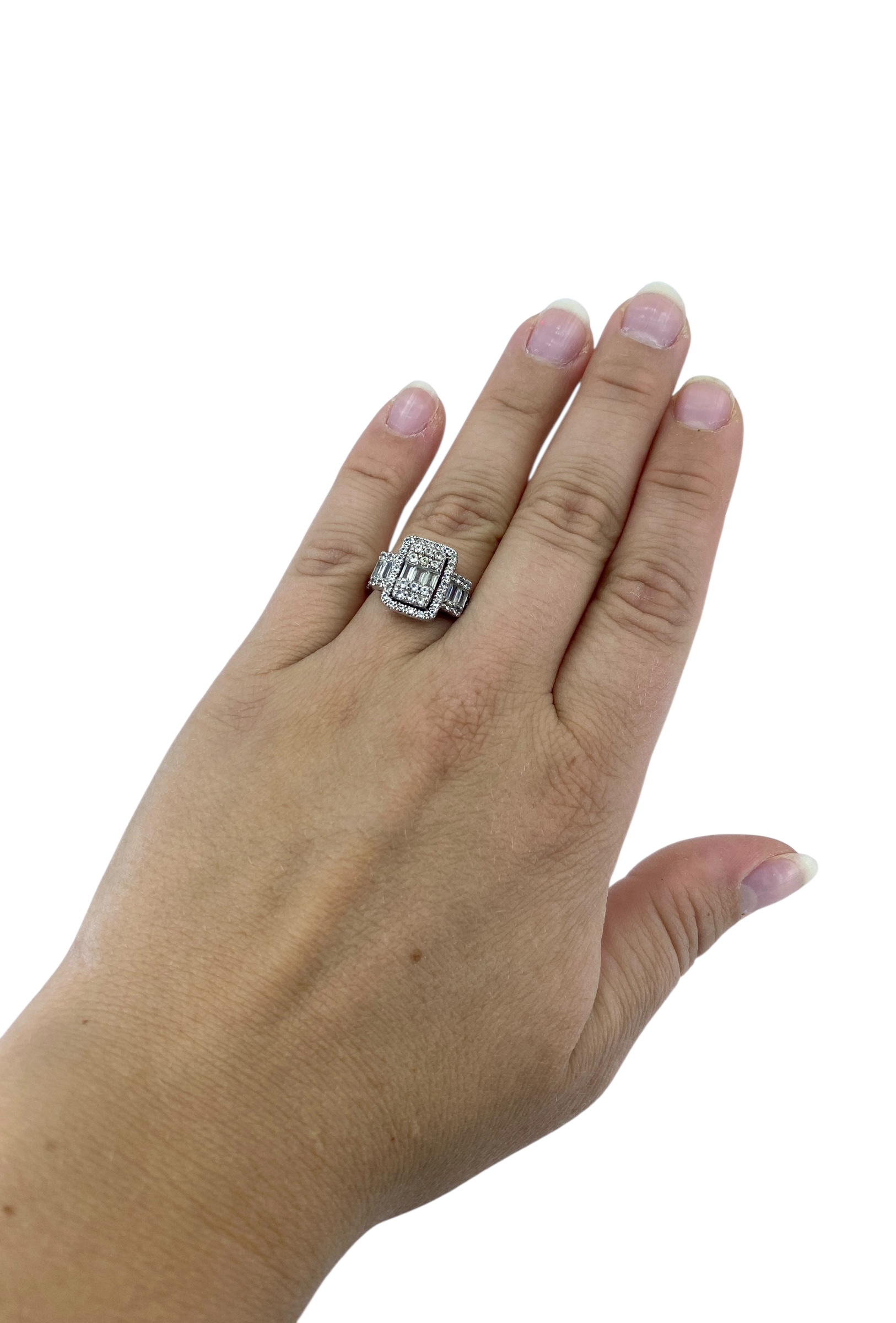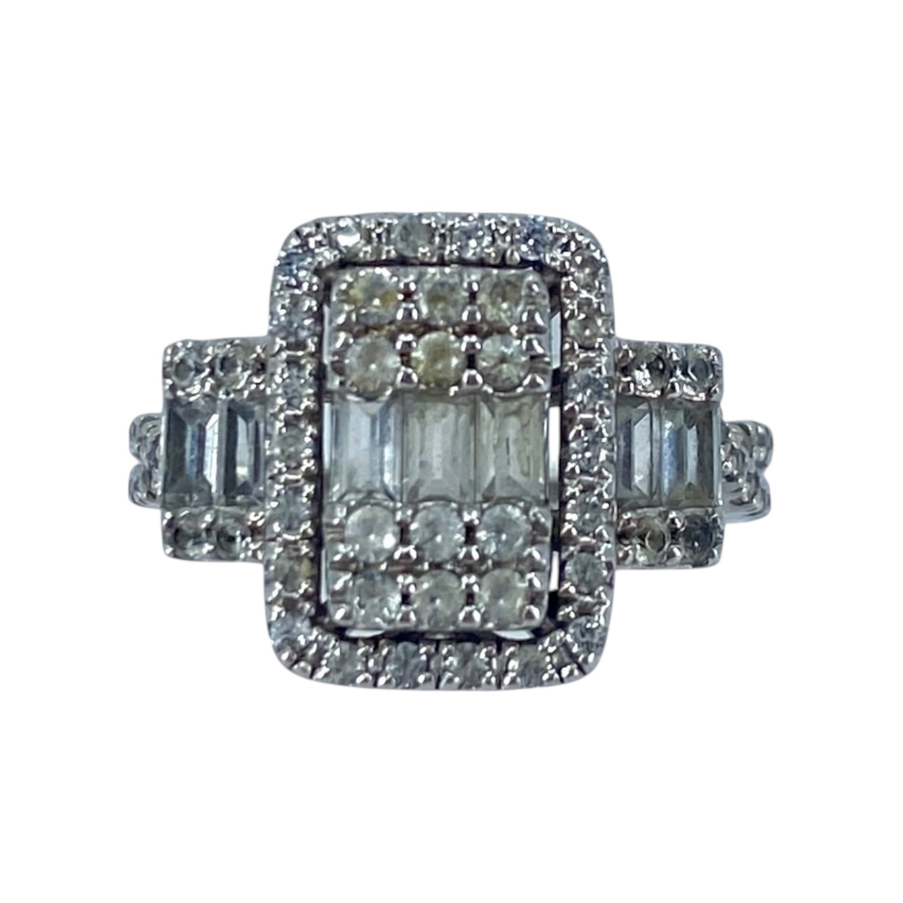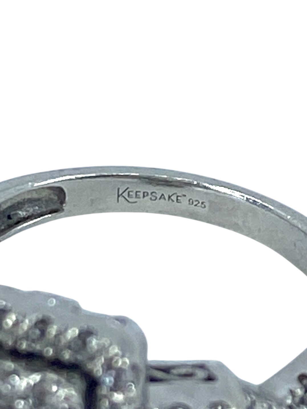 Overstated Keepsake Round & Baguette Colorless Sapphire Sterling Silver Ring, sz 6.75, 4.64g, Engraved “Keepsake 925”