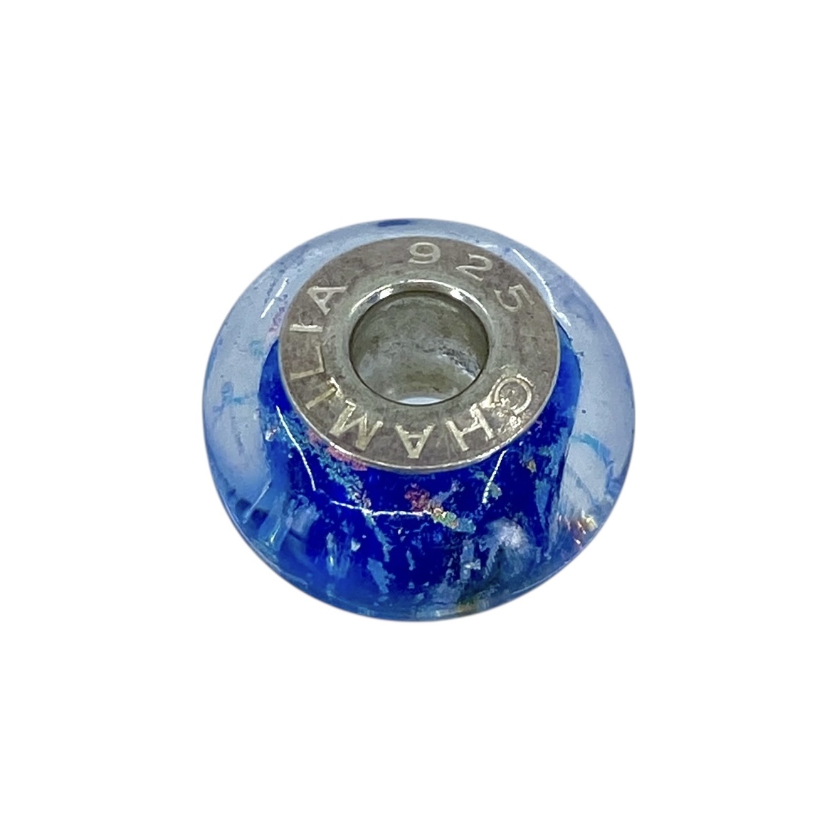 Iridescent Blue Chamilia Sterling Silver Charm, 2.59g, Engraved “925 Chamilia”, 4.01g