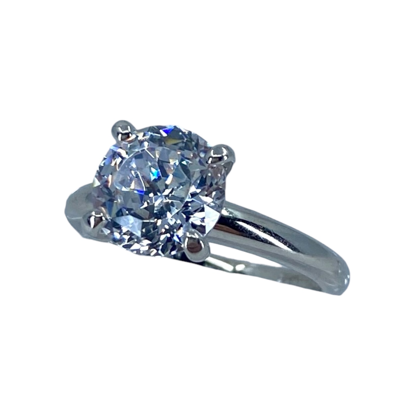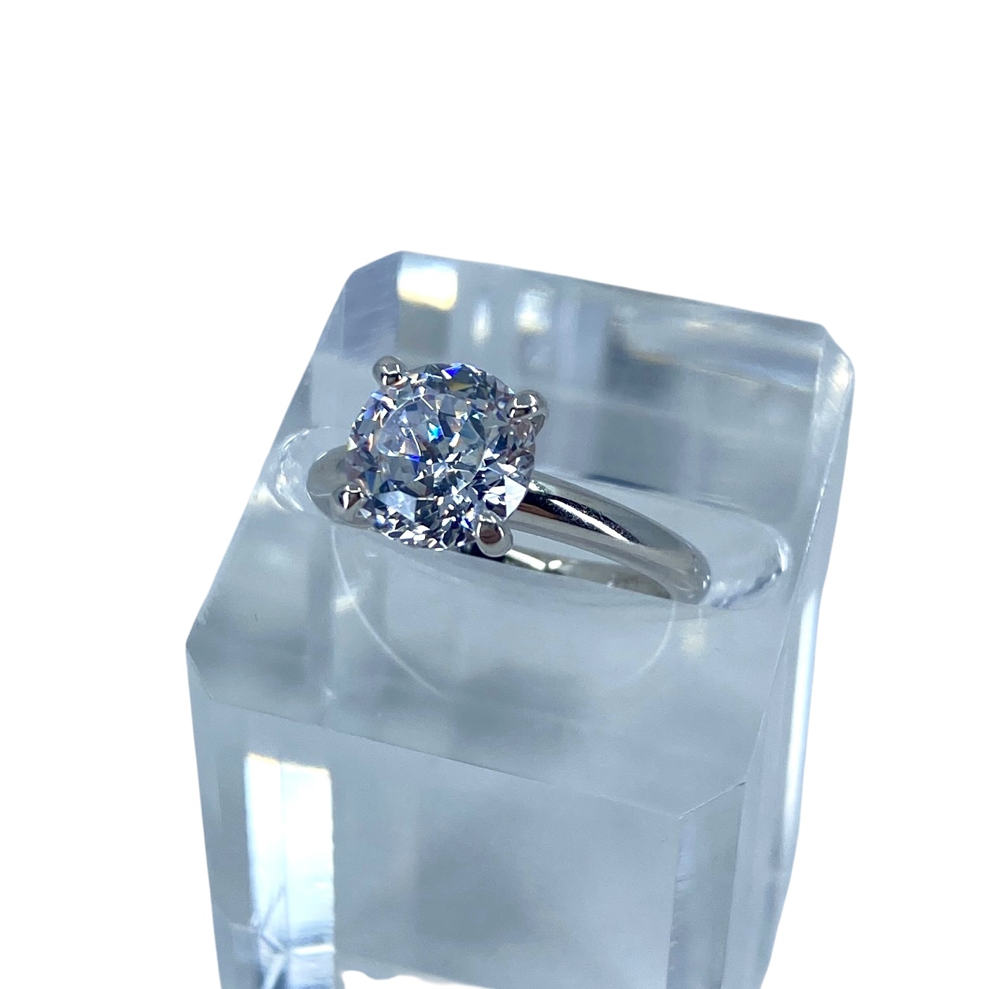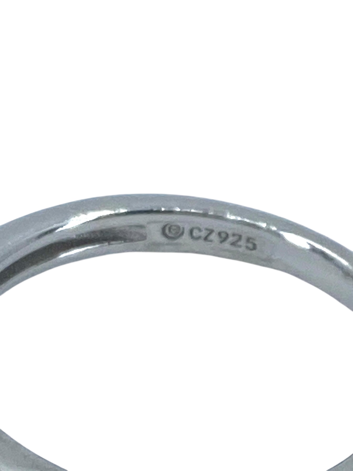 Simple Signed Round Cubic Zirconia Sterling Silver Ring, sz 7.5, 4.43g, engraved “e CZ 925”