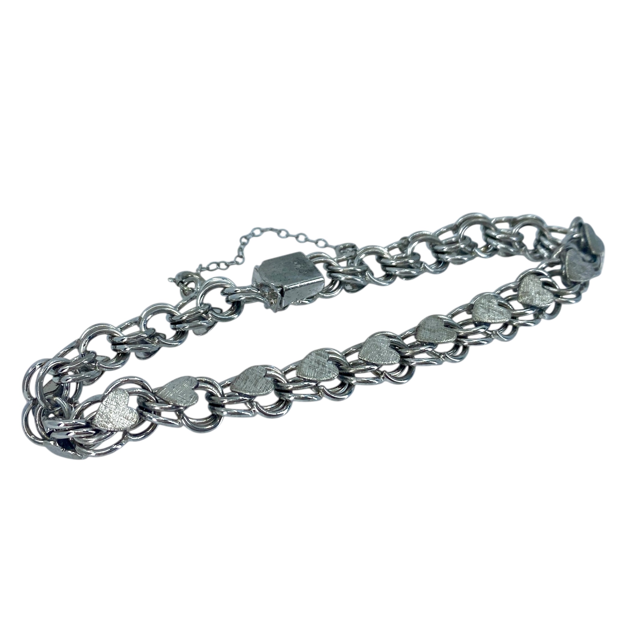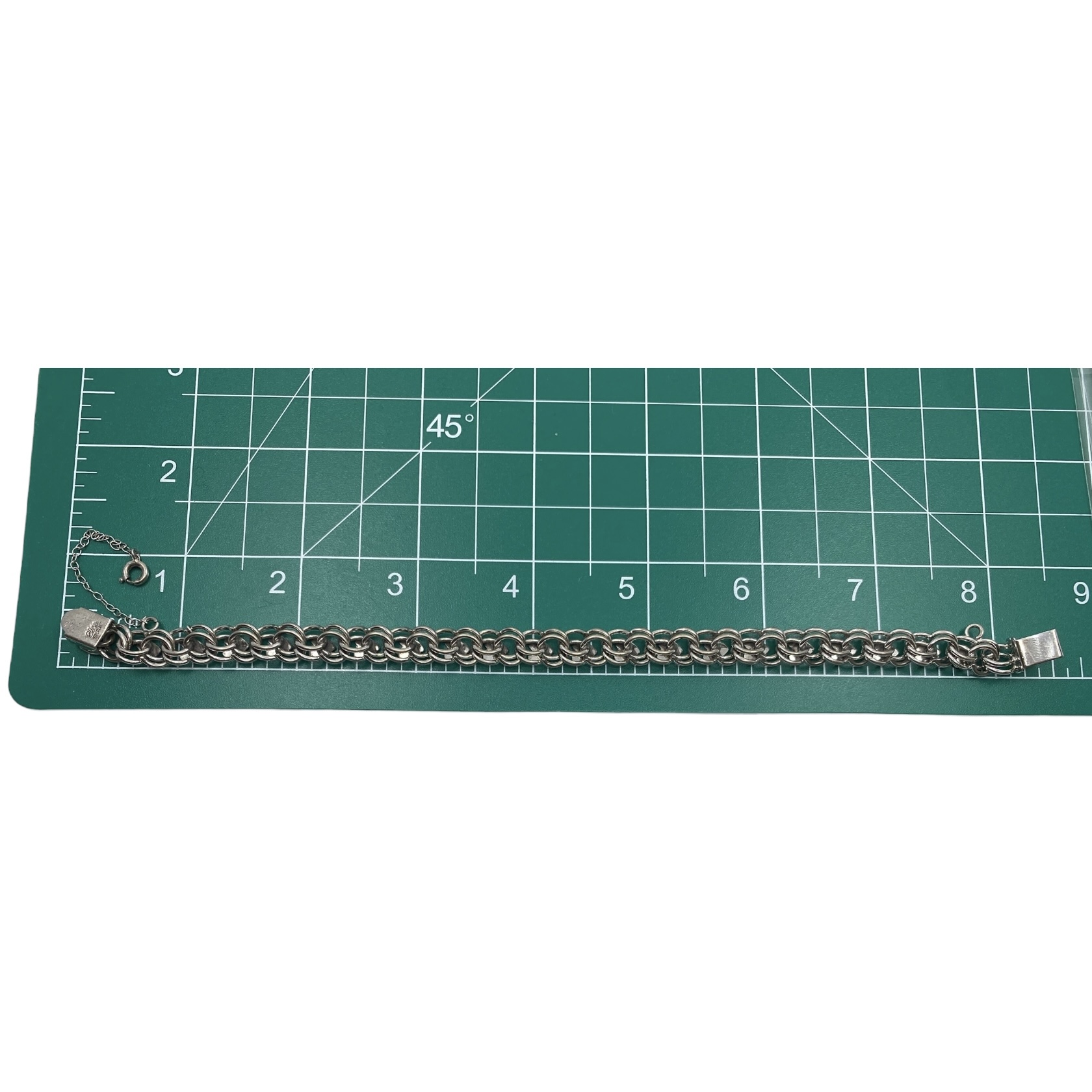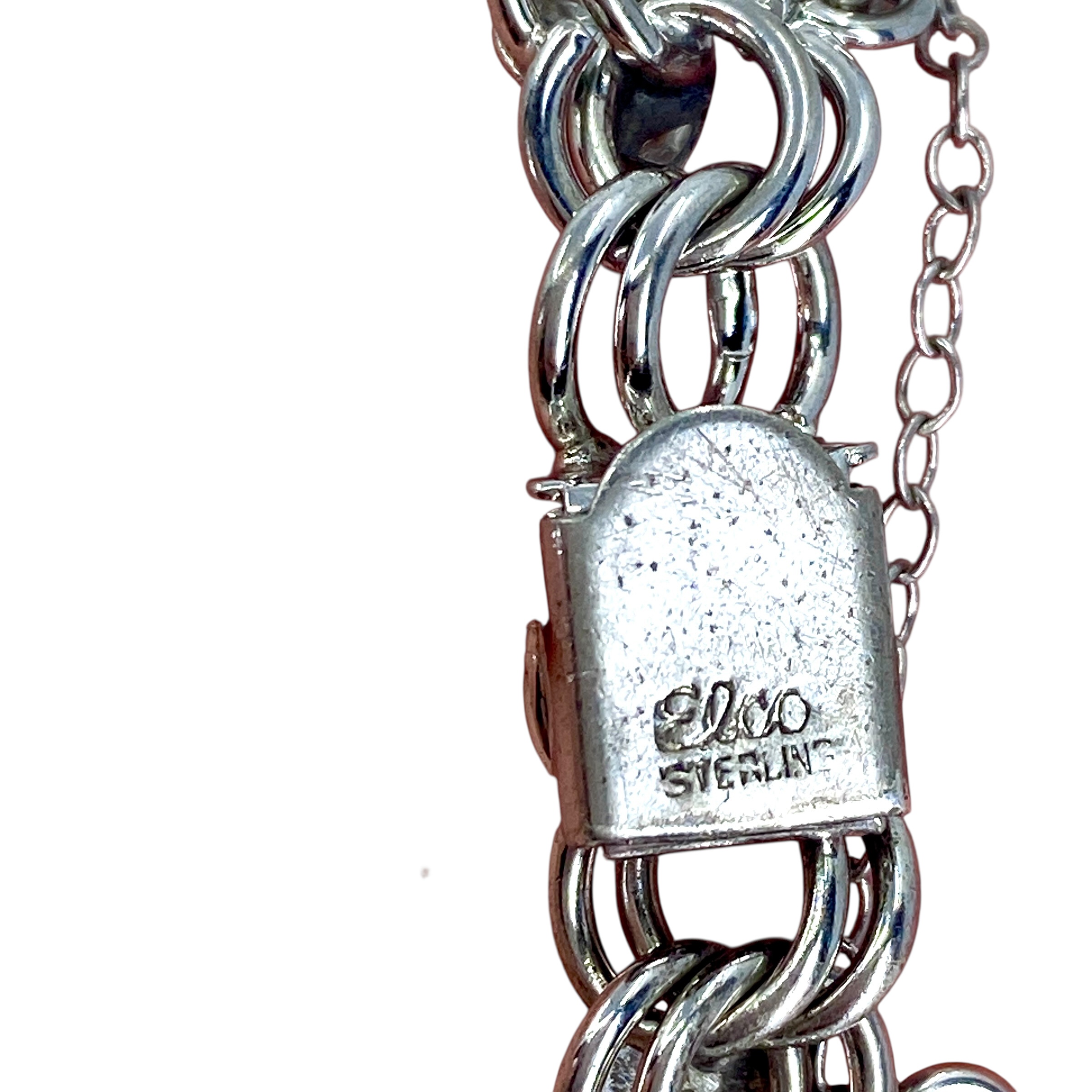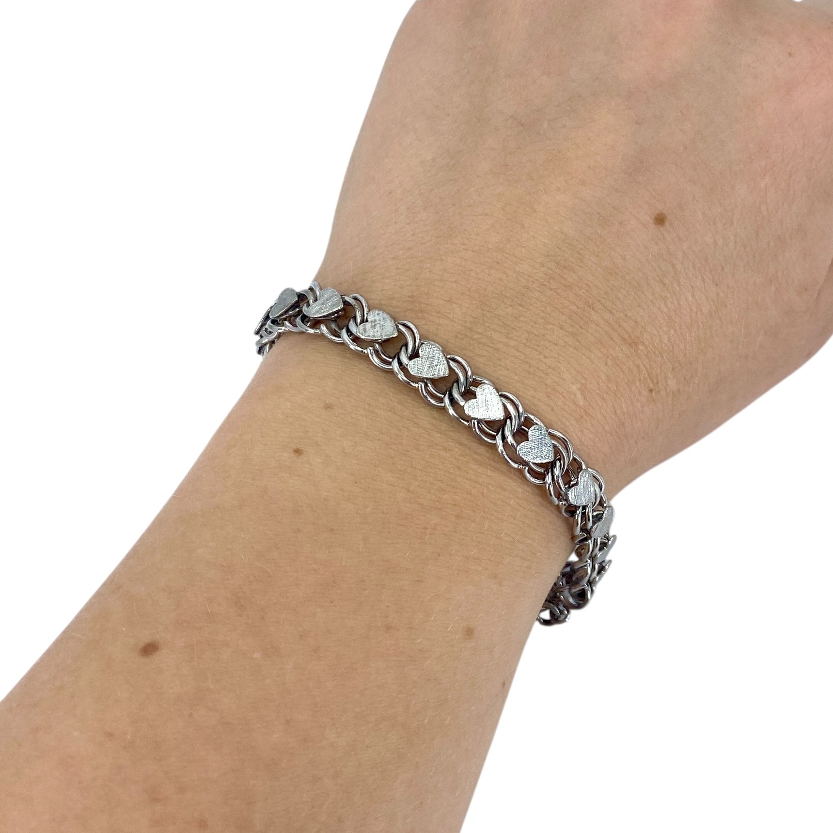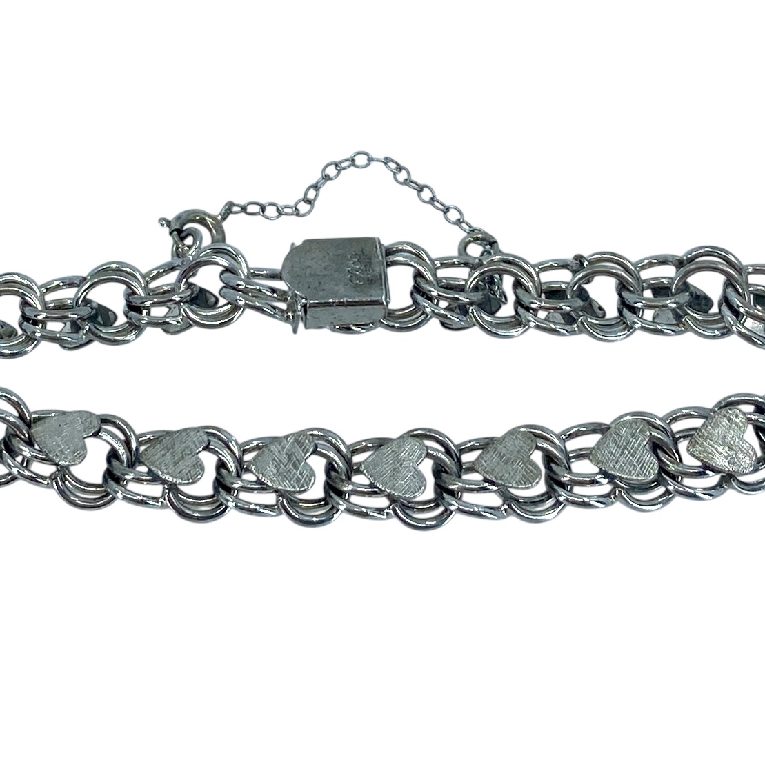 Lovely Triple Curb Heart Style Sterling Silver Signed Bracelet, 8.5in, 19.01g, Engraved “Elco Sterling”