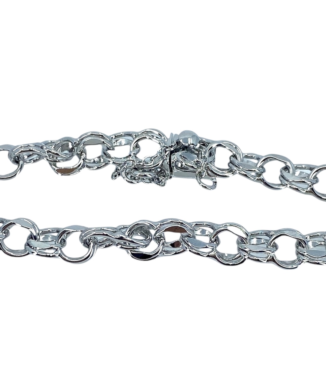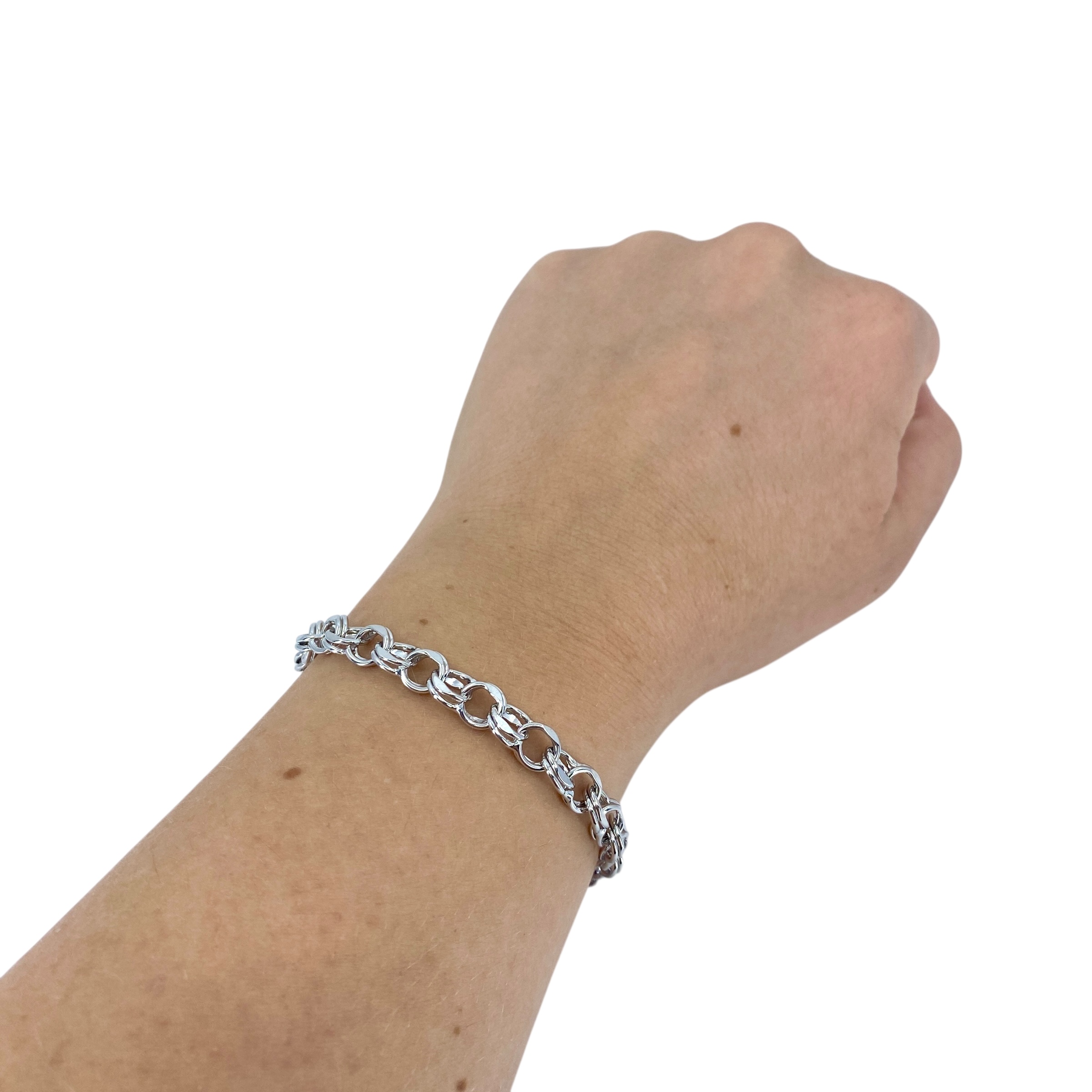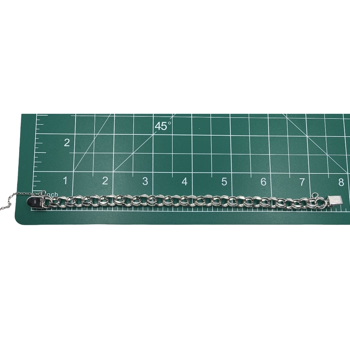 Double Flat Curb Style Sterling Silver Signed Bracelet, 7.5in, 12.53g, Engraved “ER Sterling: