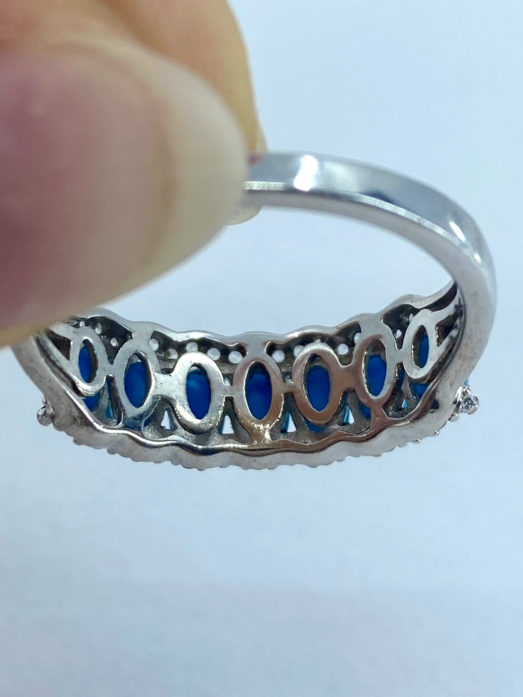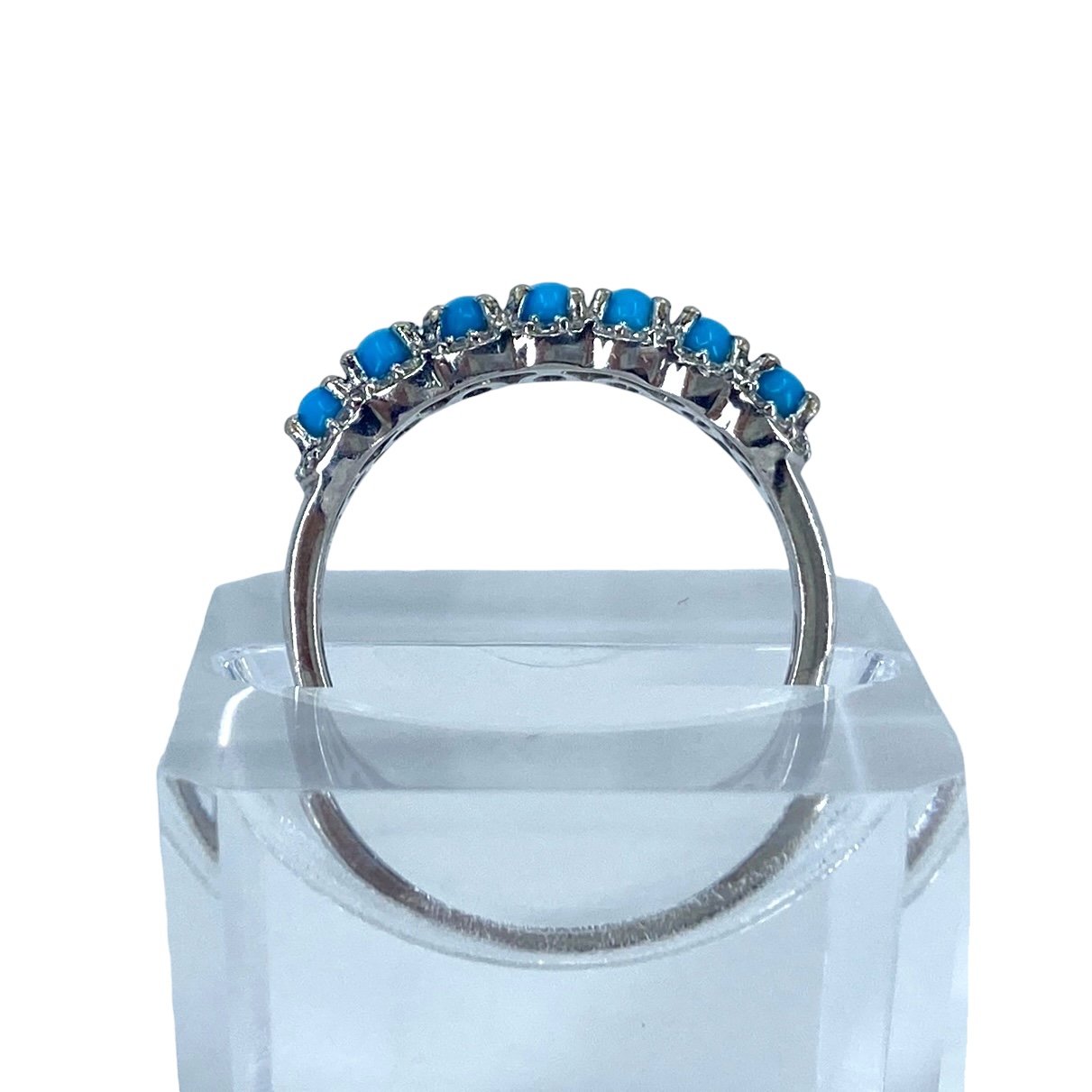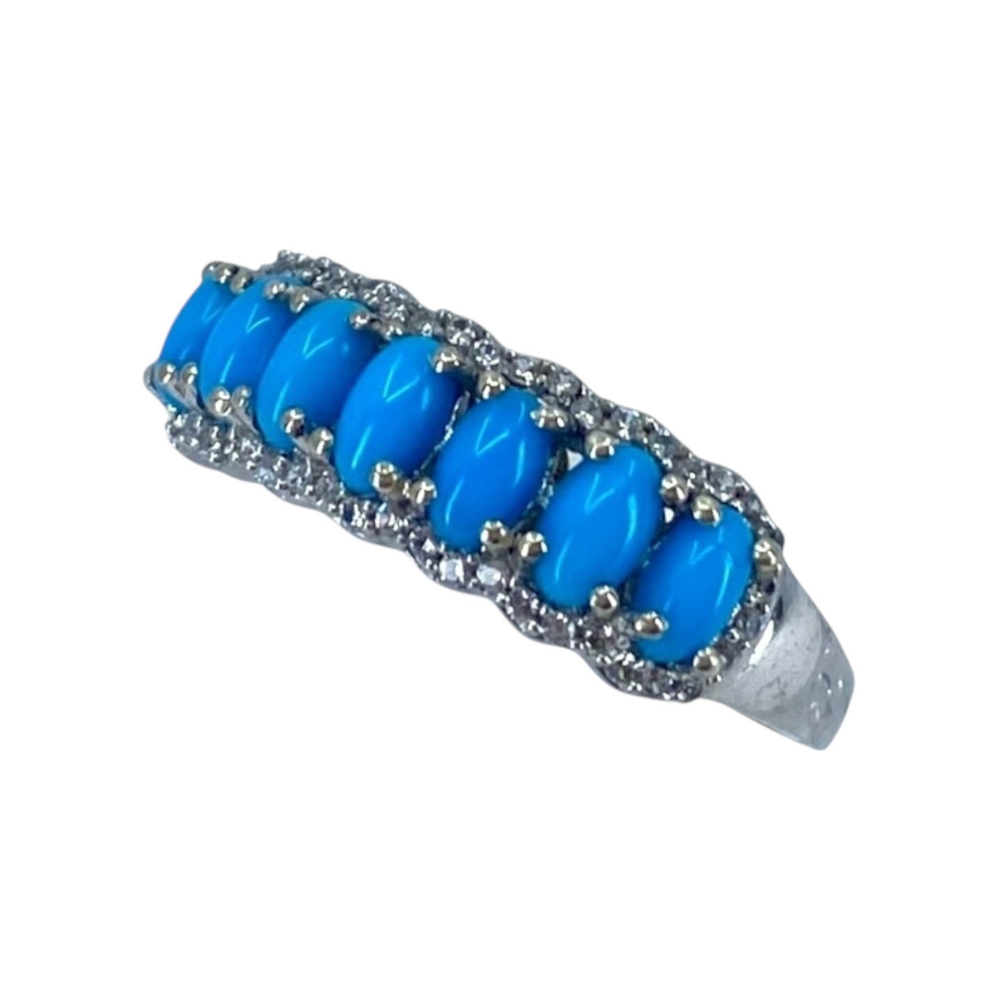 Turquoise & Colorless Topaz Sterling Silver Cluster Ring, sz 10, 3.78g, engraved “STS 925 India”