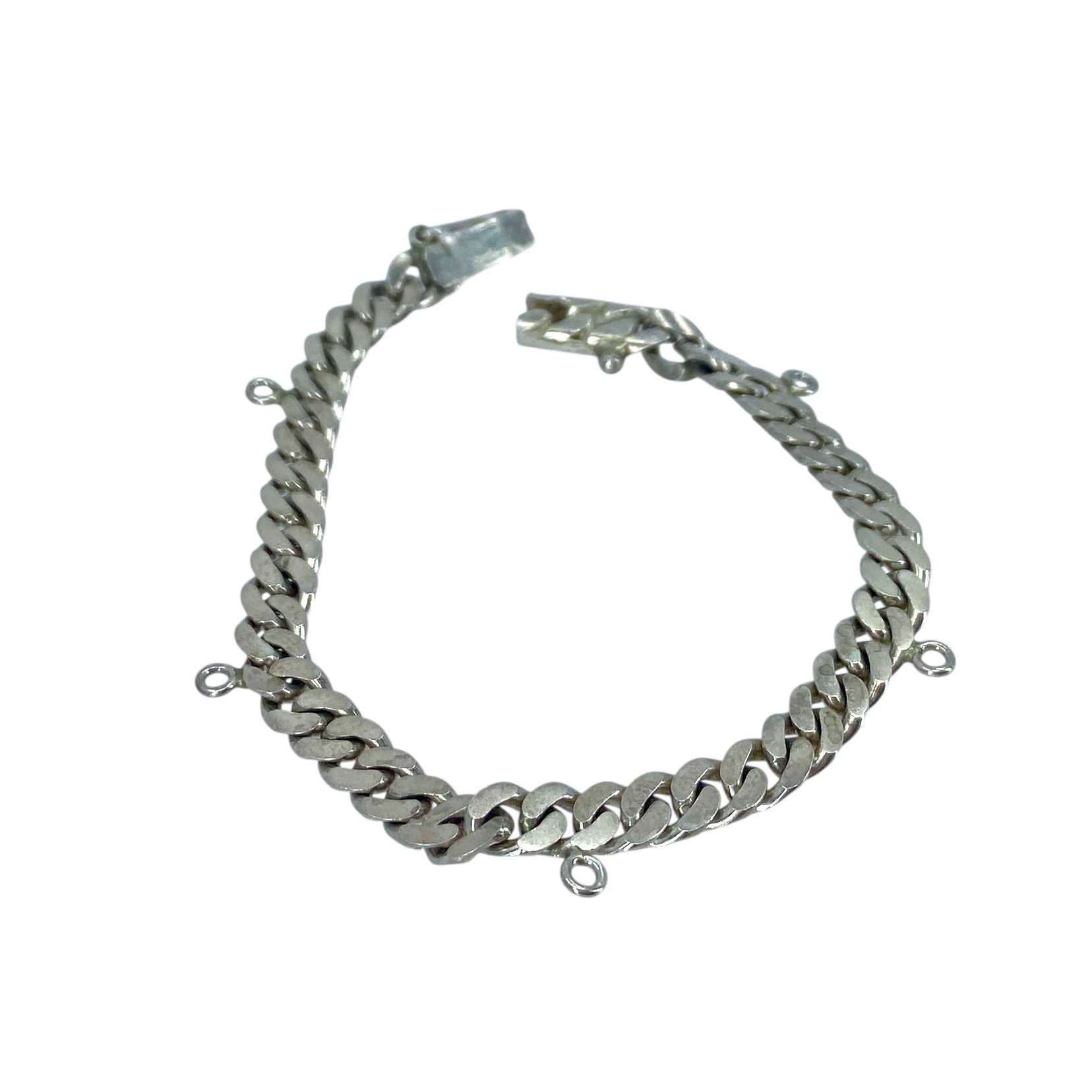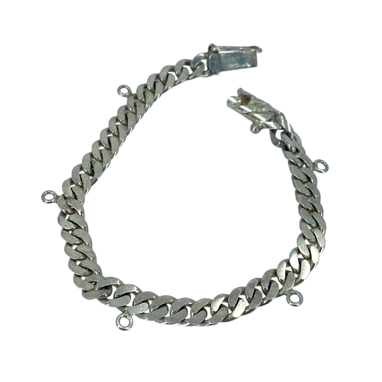 Vintage Cuban Link Sterling Silver Signed Charm Bracelet, 6.25in, 9.42g