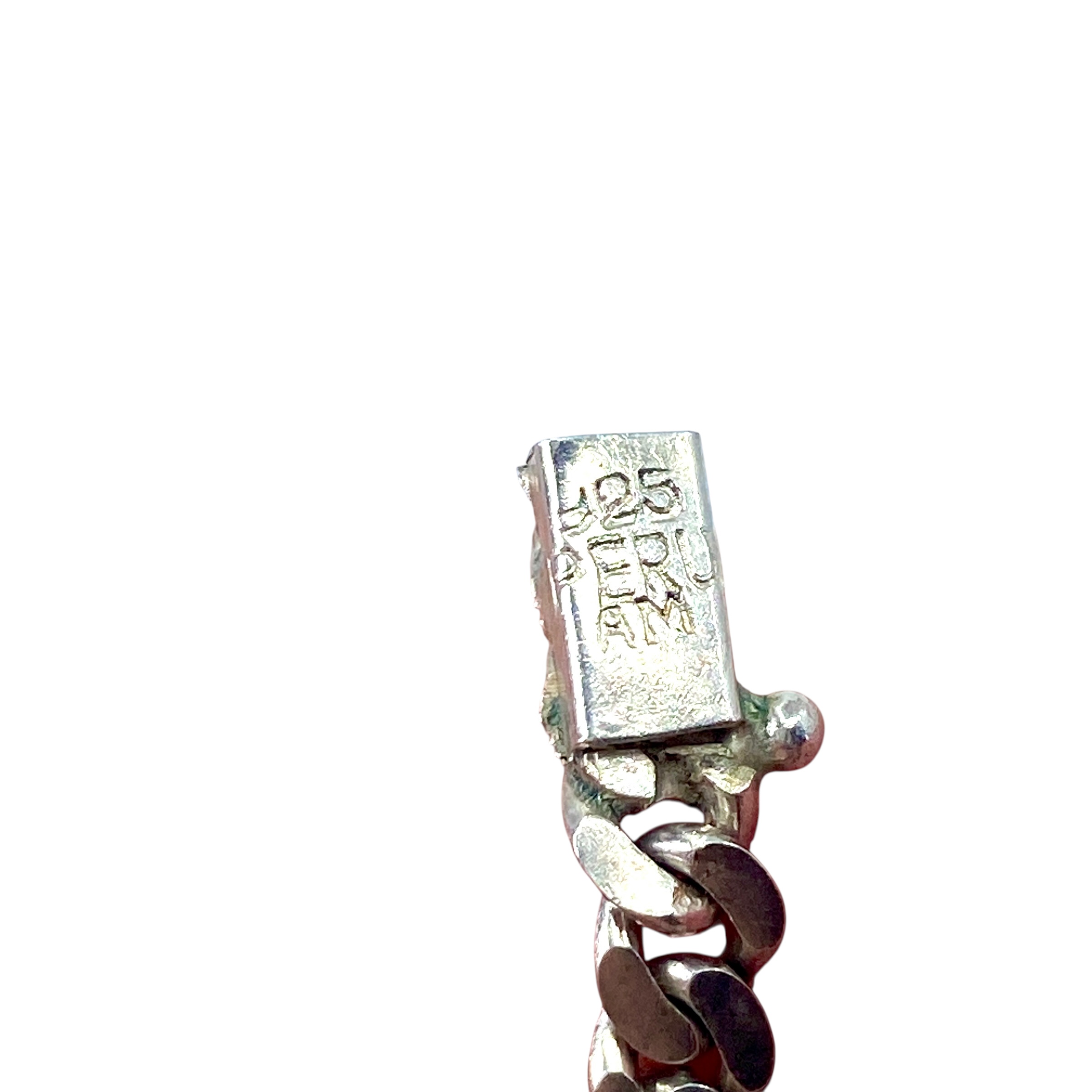 Vintage Cuban Link Sterling Silver Signed Charm Bracelet, 6.25in, 9.42g, Engraved “925 PERU AM”
