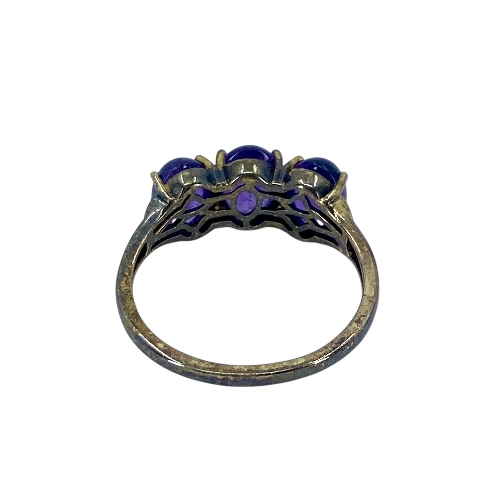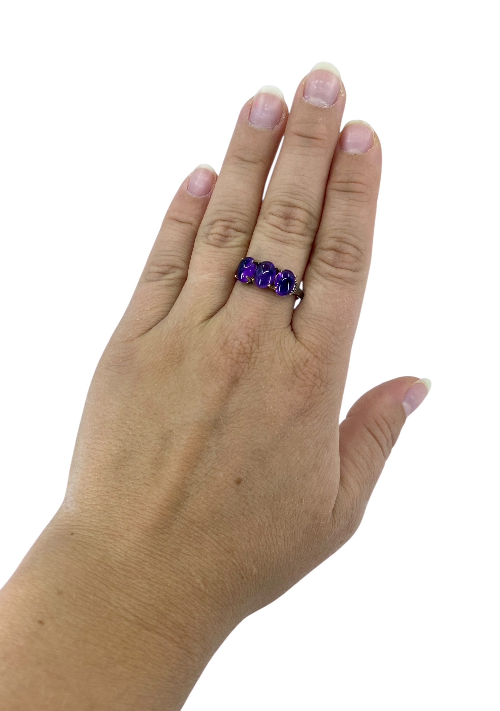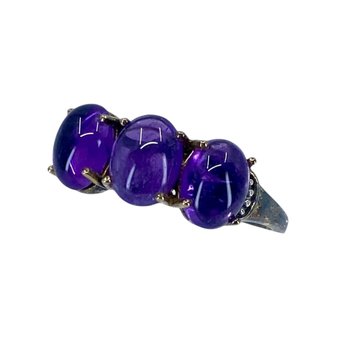 Lovely 3 Oval Amethyst Sterling Silver Ring, sz 10, 3.14g, Engraved “STS 925”