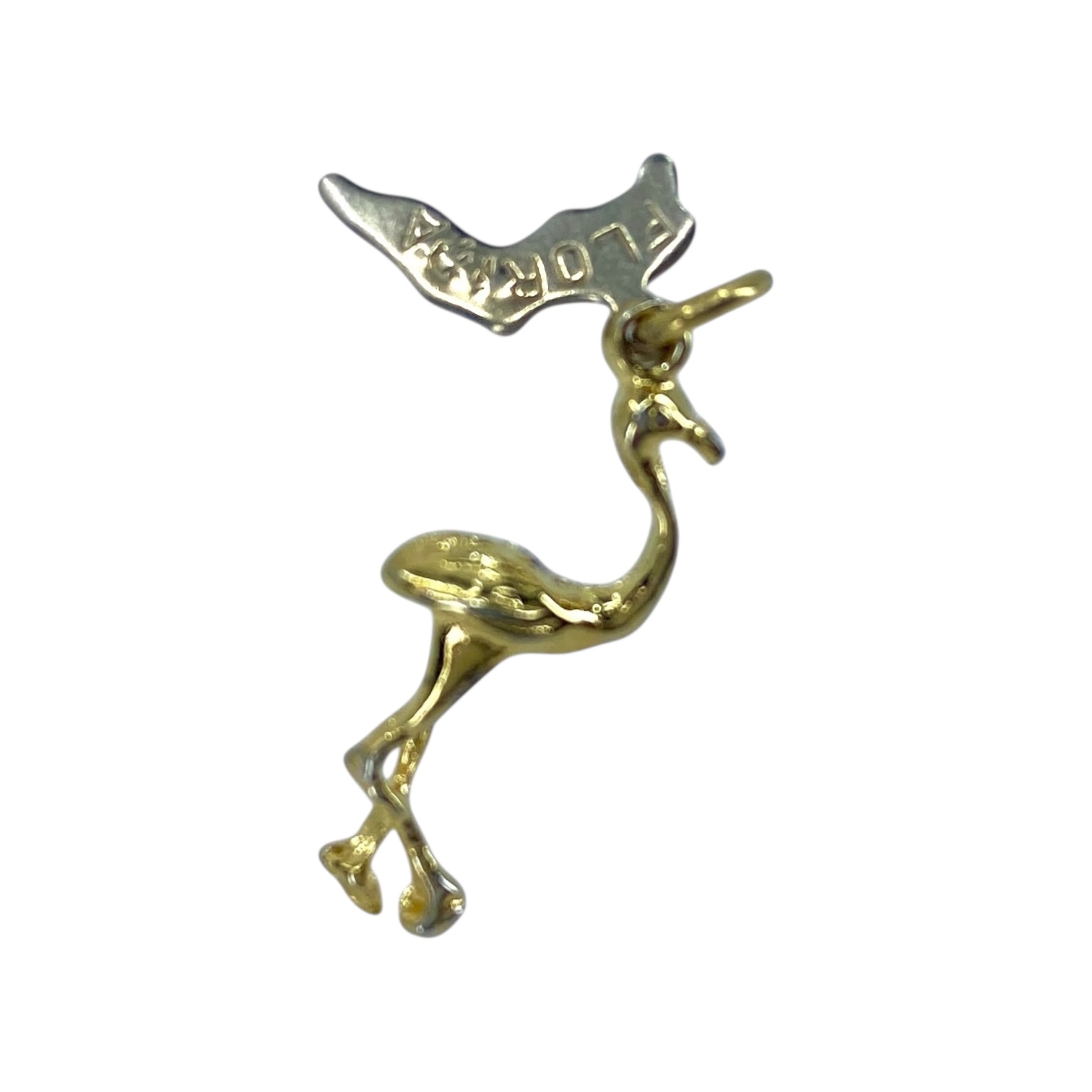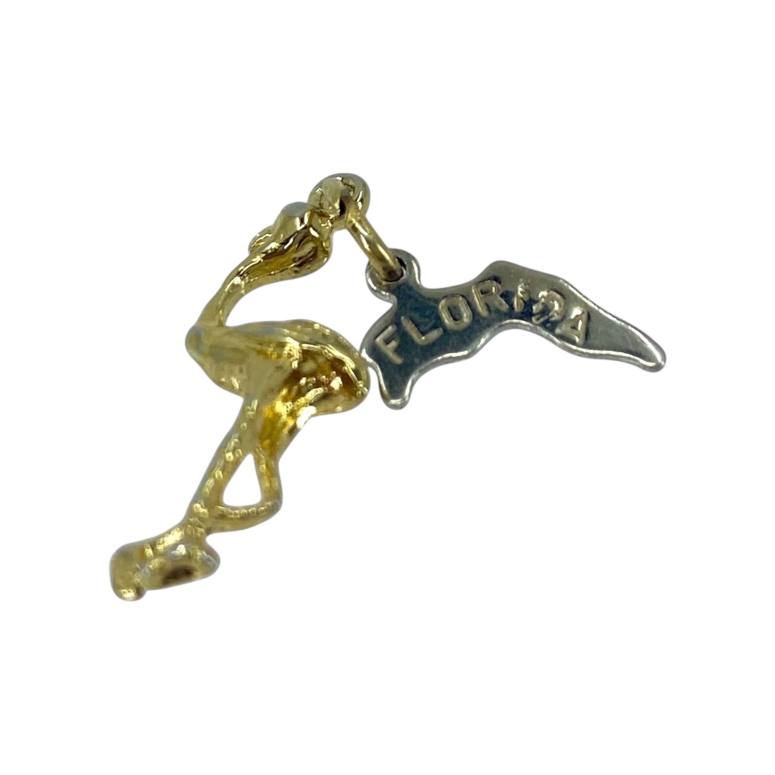 Dainty Gold Over Silver Flamingo Florida State Charm, 1.17g