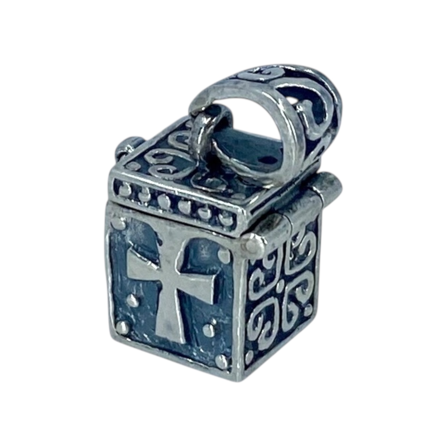 Ornate Sterling Silver Christian Signed Locket Box Charm, 4.54g, Engraved “925 IBB”