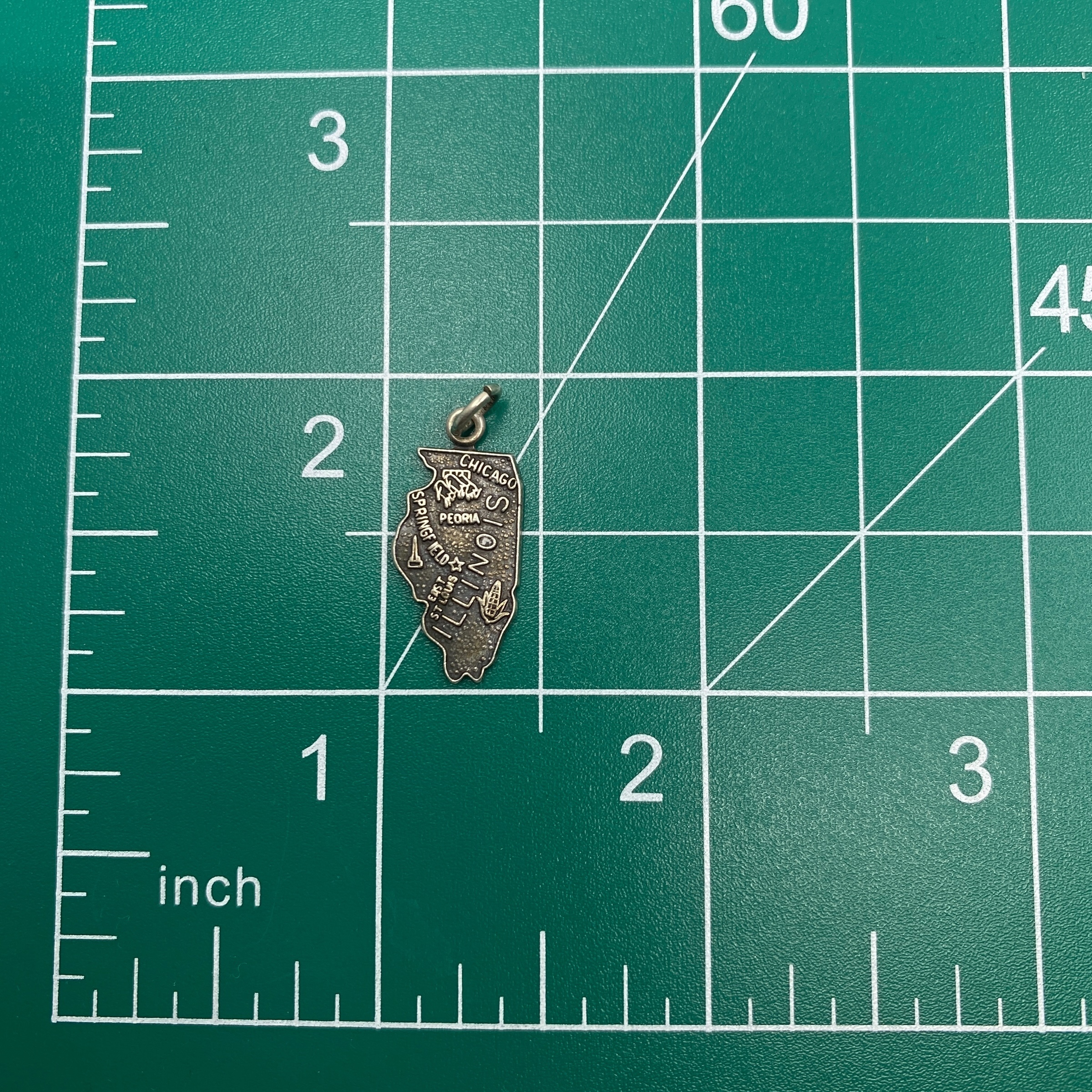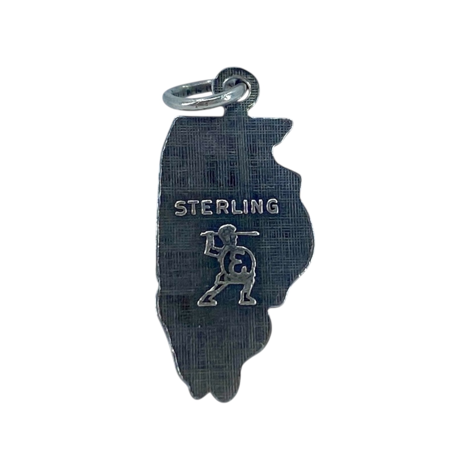 Illinois State Sterling Silver SIgned Charm, 1.24g, Engraved “Sterling E”