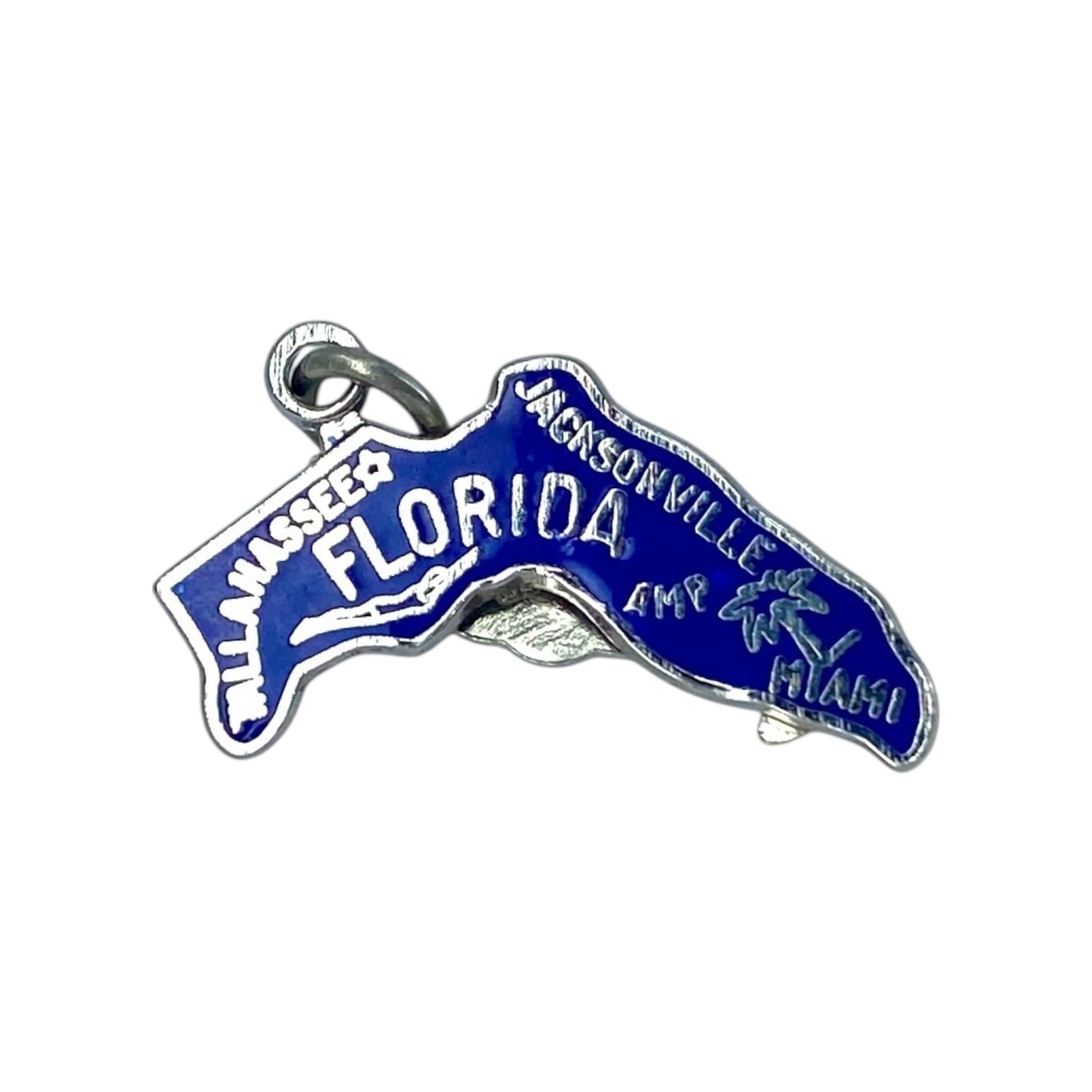Blue Florida State + Palm Tree Silver Charm, 1.23g, Engraved “NICK SIL”