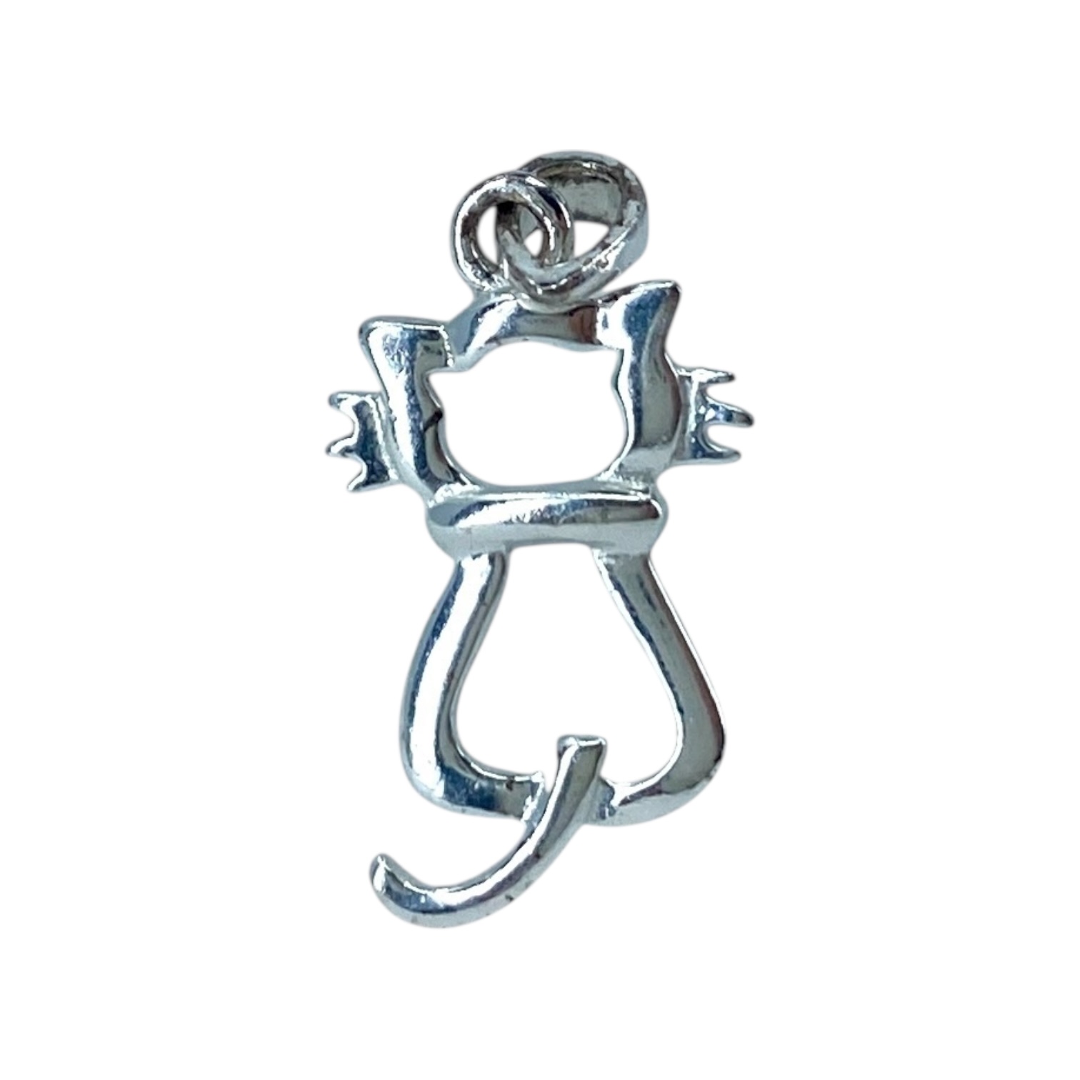 Adorable Cat Outline Sterling Silver Signed Charm, 0.78g, Engraved “MD 925 TH”