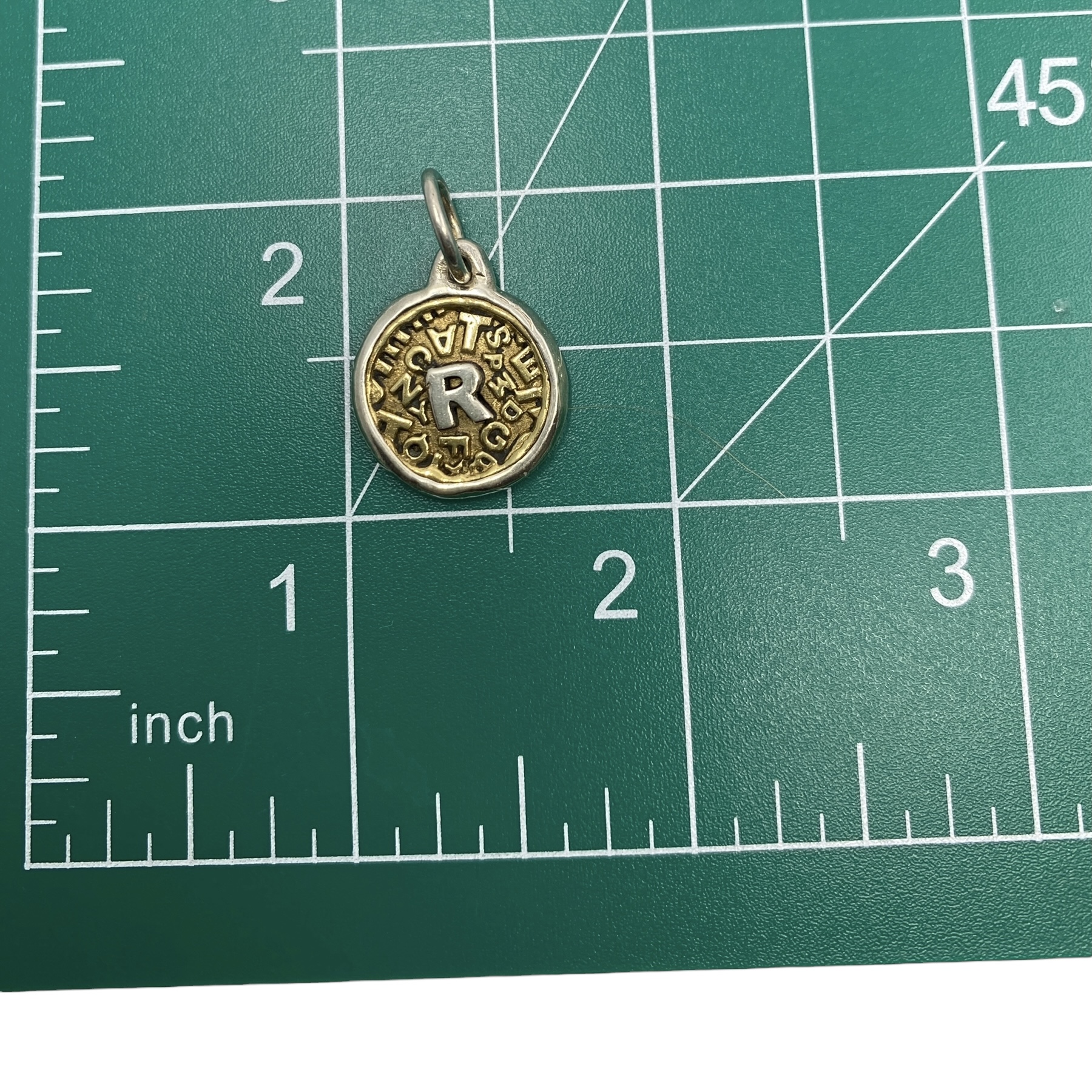 Handmade “R” Alphabet Gold Over Sterling Silver Signed Charm, 4.0g, Engraved “WP 925”