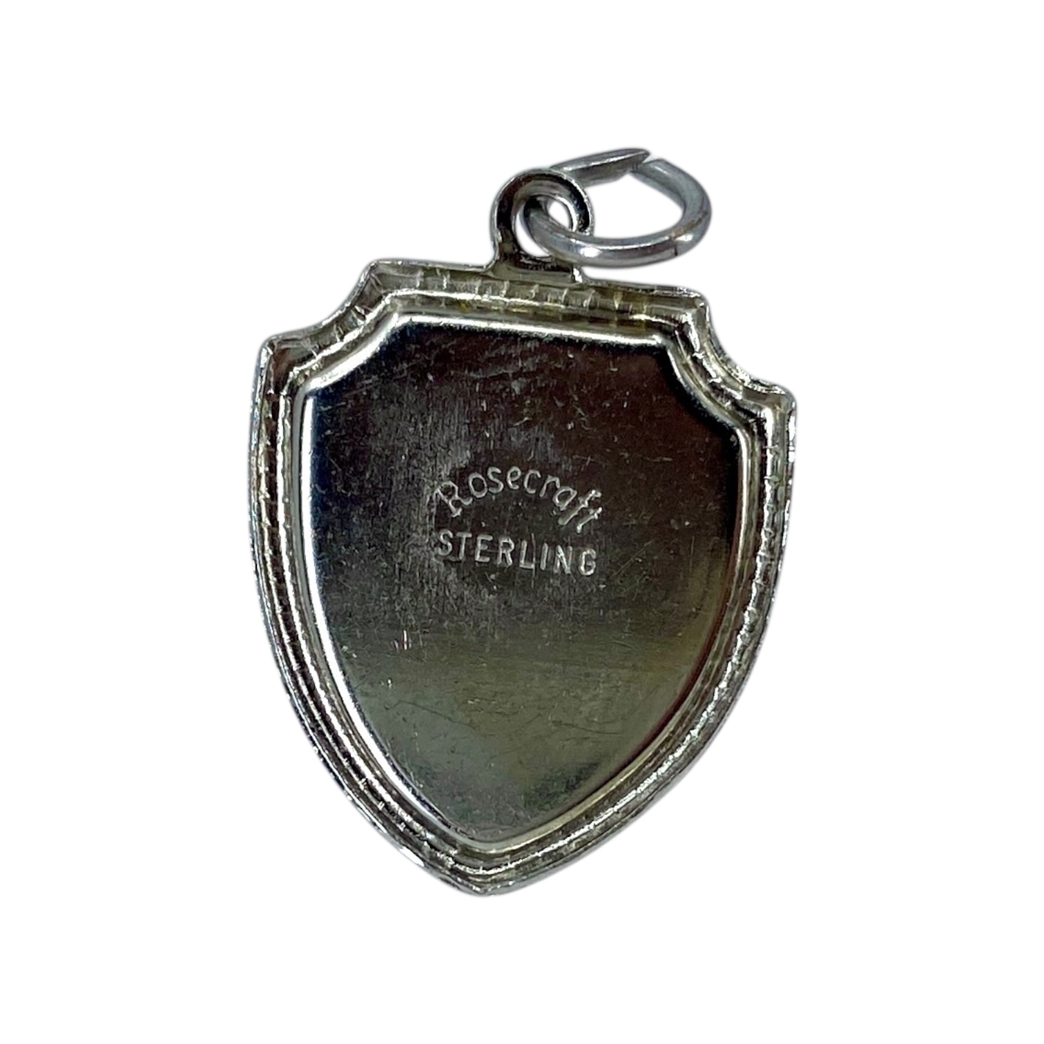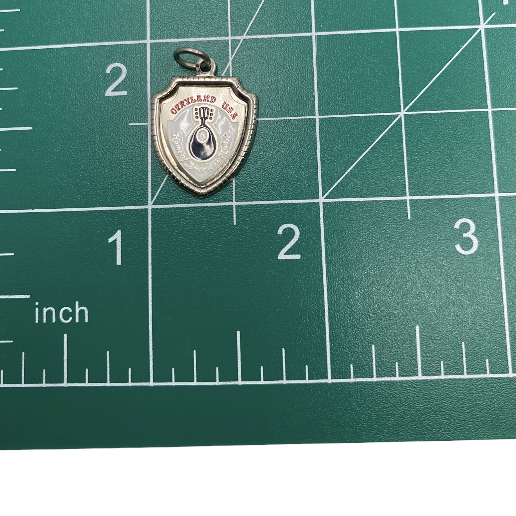 OPRYLAND USA “Home Of American Music” Shield Shaped Sterling Silver ROSECRAFT Charm, 1.41g, Engraved “ROSECRAFT STERLING”
