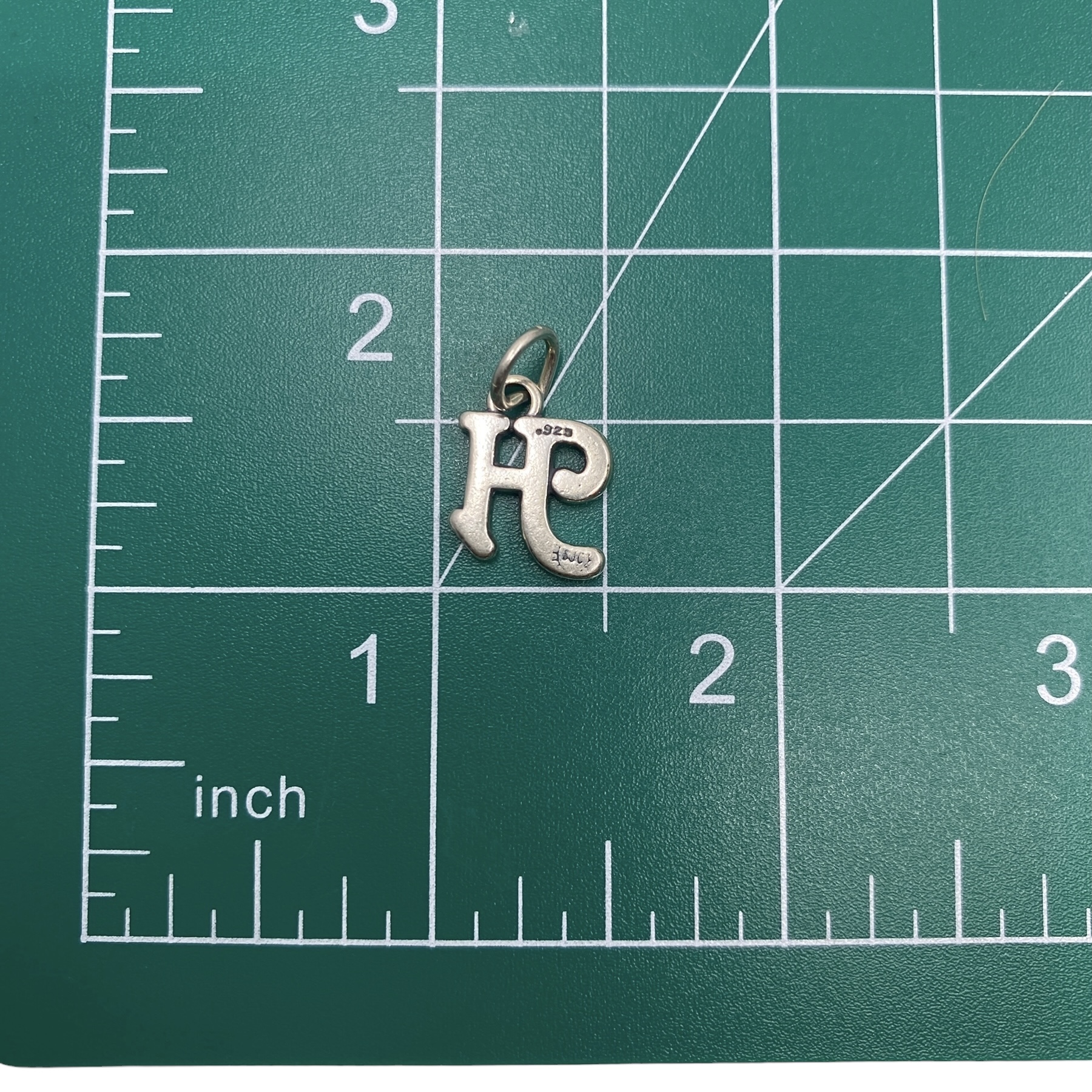 Cursive Capital H Sterling Silver Signed Charm, 1.55g, Engraved “.925 SJC”