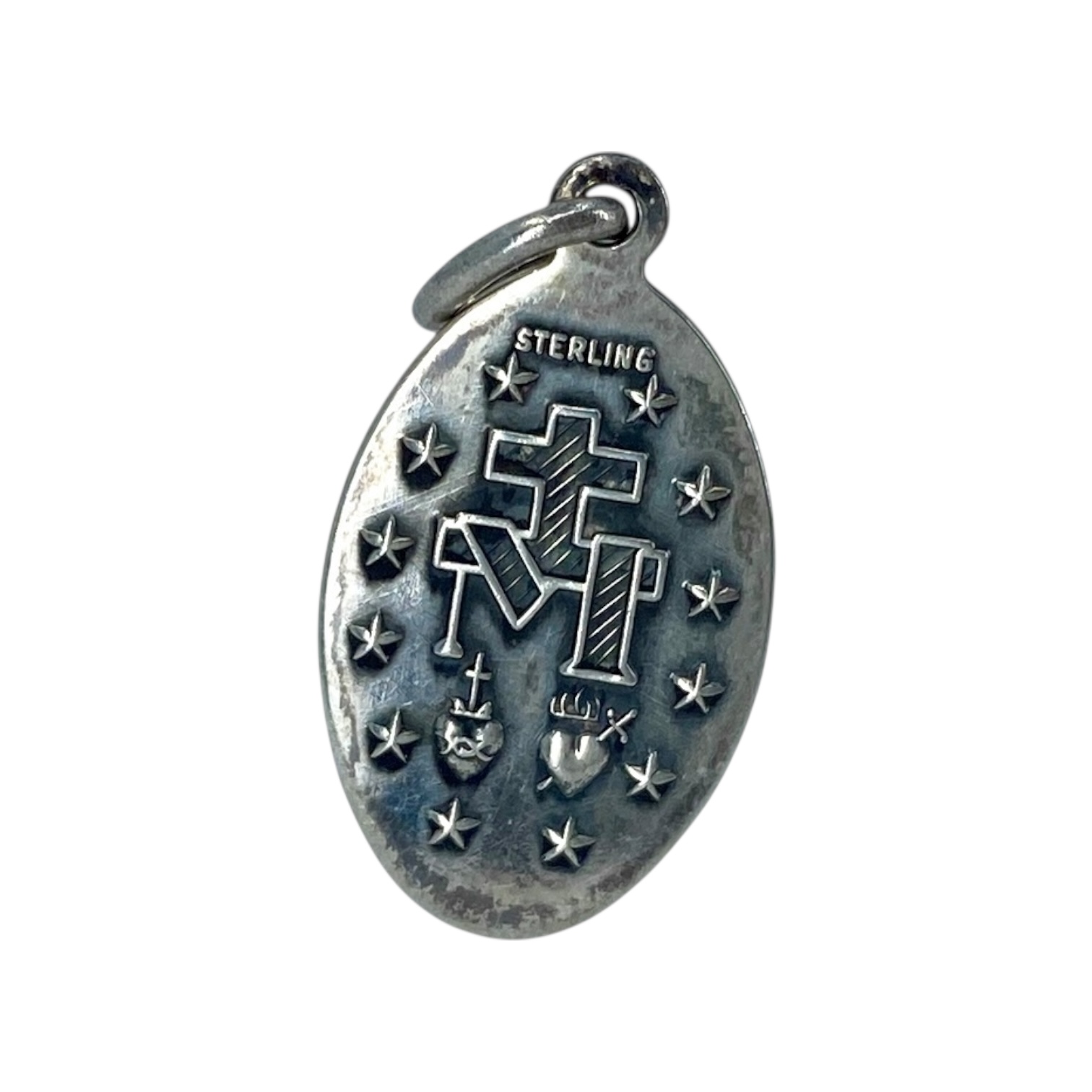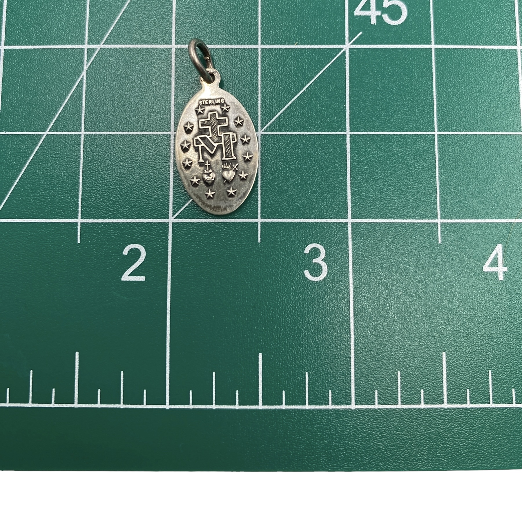 Virgin Mary Miraculous Medal “1830” Sterling Silver Signed Charm, 2.03g, Engraved “Sterling Cross M”