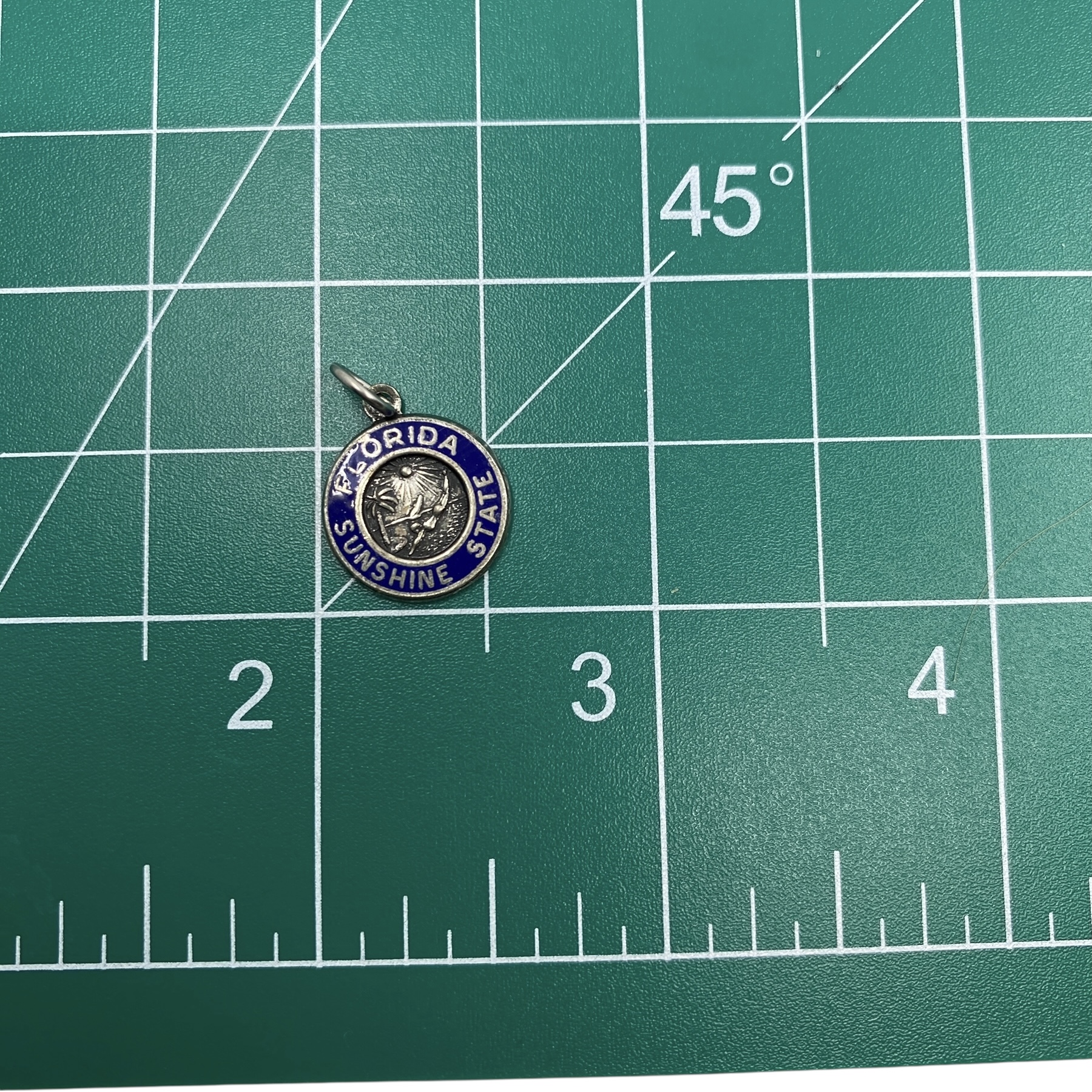 Blue Florida Sunshine State Sterling Silver Signed Charm, 1.83g, Engraved “F Sterling”