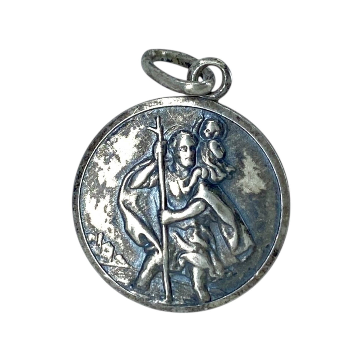 St. Christopher Medallion Sterling Silver Signed Charm, 1.83g, Engraved “J.J. 925” + Hallmark