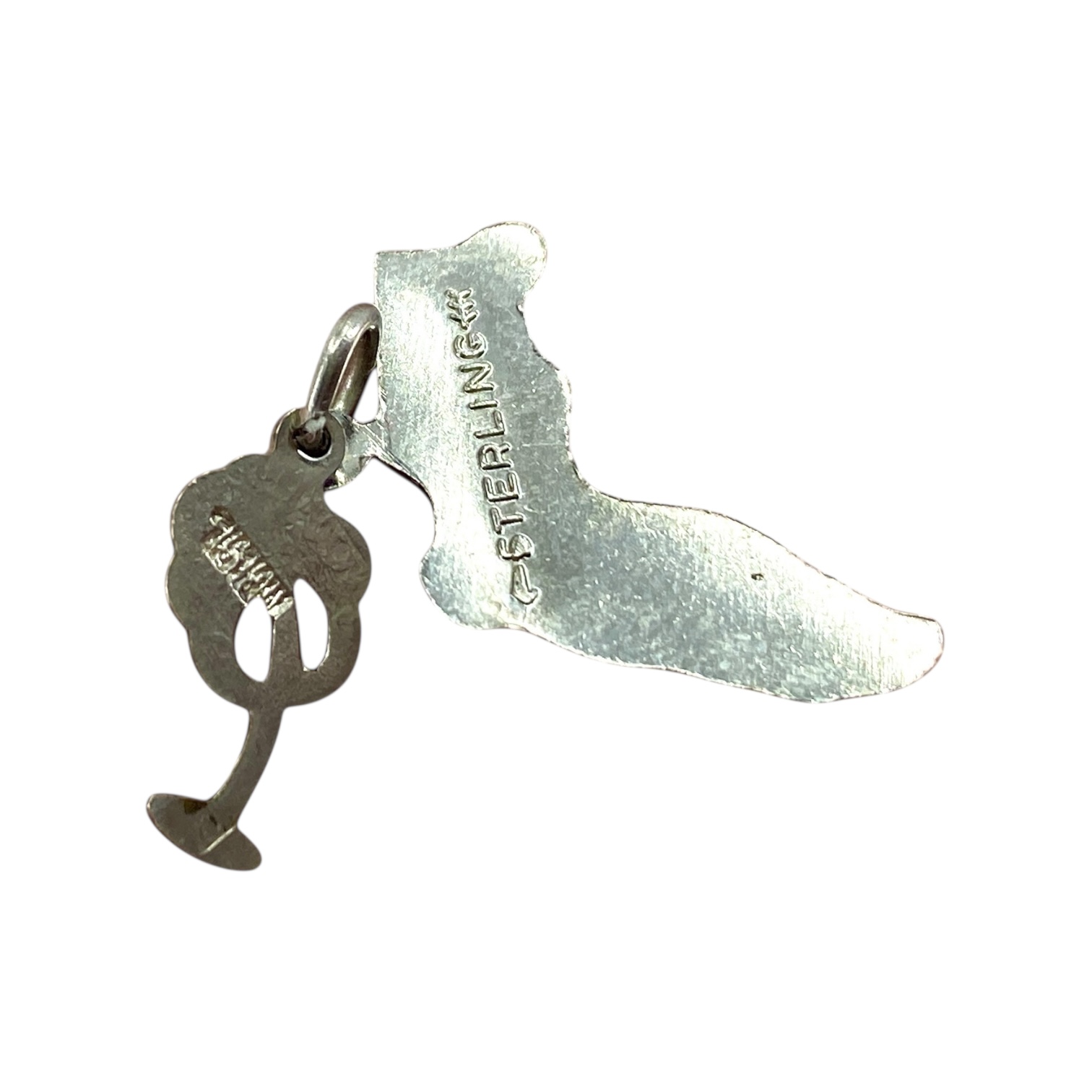 Yellow Florida Signed Sterling Silver Charm + Palm Tree, 1.11g, Engraved Sterling hallmark + NICK SIL