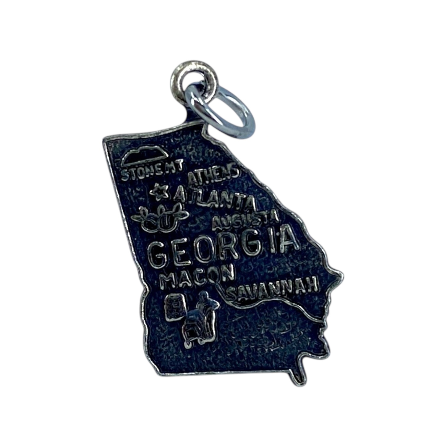 Georgia State Shaped Sterling Silver Signed Charm, 1.46g, Engraved “F Sterling”