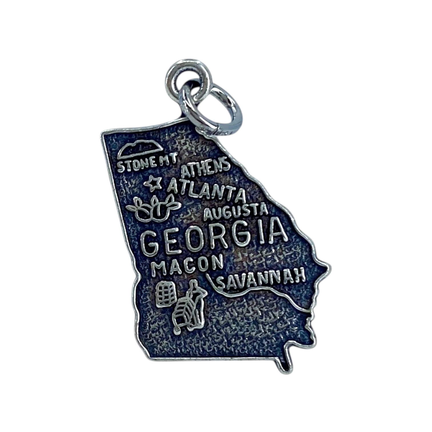 Georgia State Shaped Sterling Silver Signed Charm, 1.54g, Engraved “F Sterling”