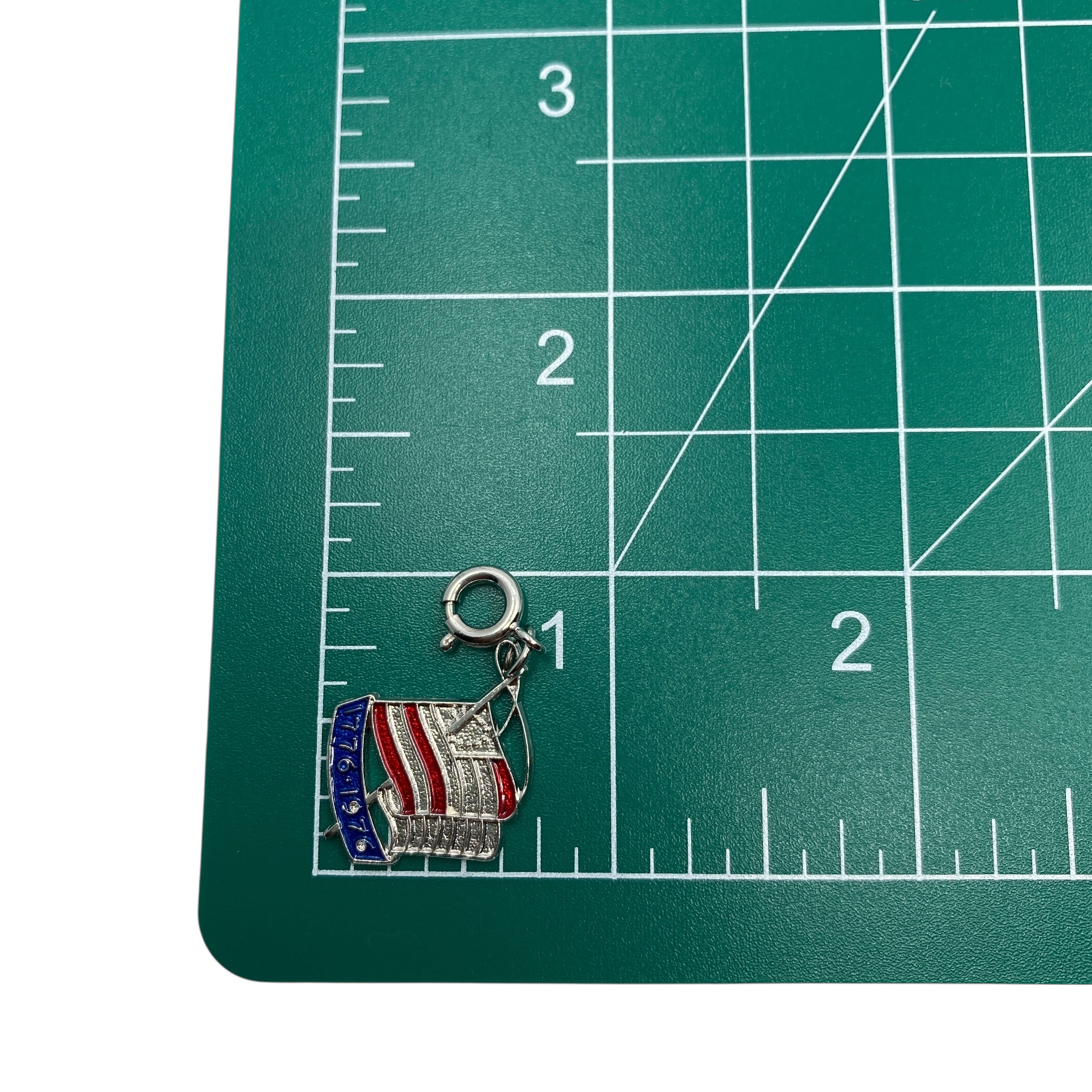 Vintage American Flag Sterling Silver Red + Blue Charm, 2.06g, Engraved “1776-1976”