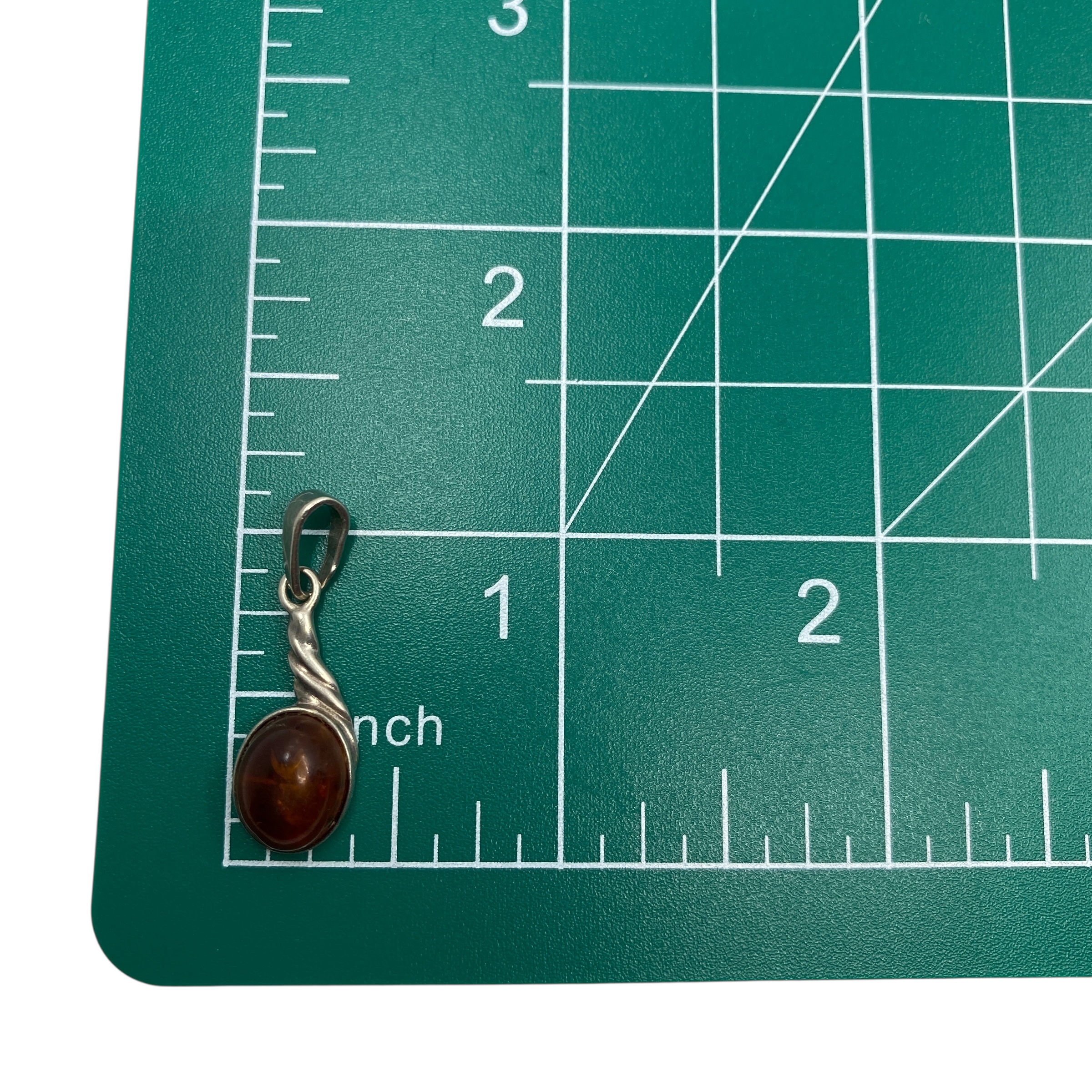Vintage Oval Baltic Amber Sterling Silver Drop Signed Pendant, 1.11g, Engraved “925 DSB”