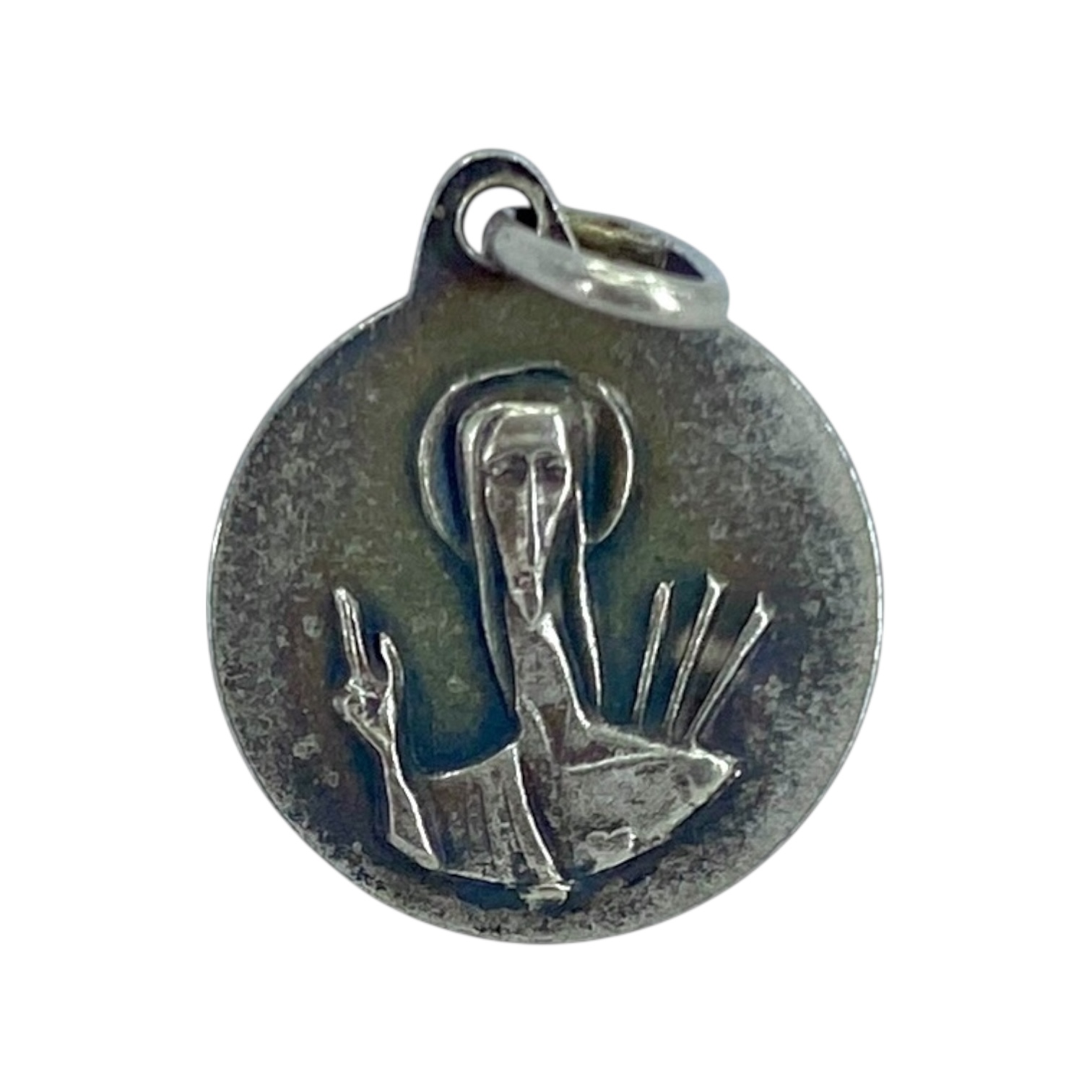 Double Sided “Our Lady Of Montserrat” Spanish Sterling Silver Charm, 1.28g