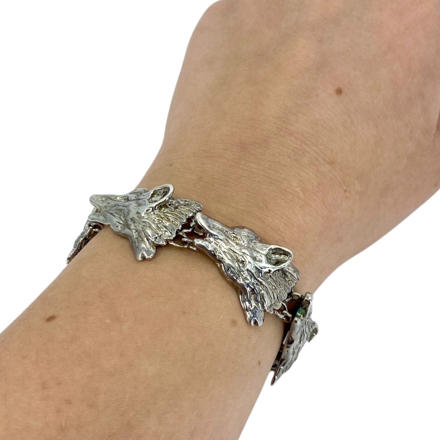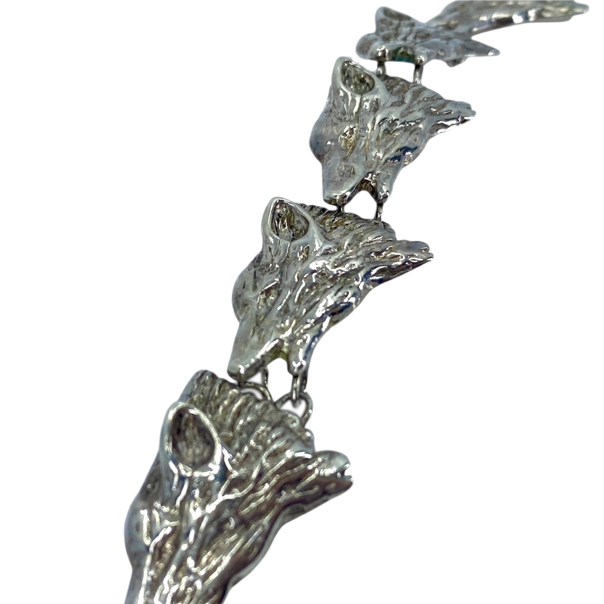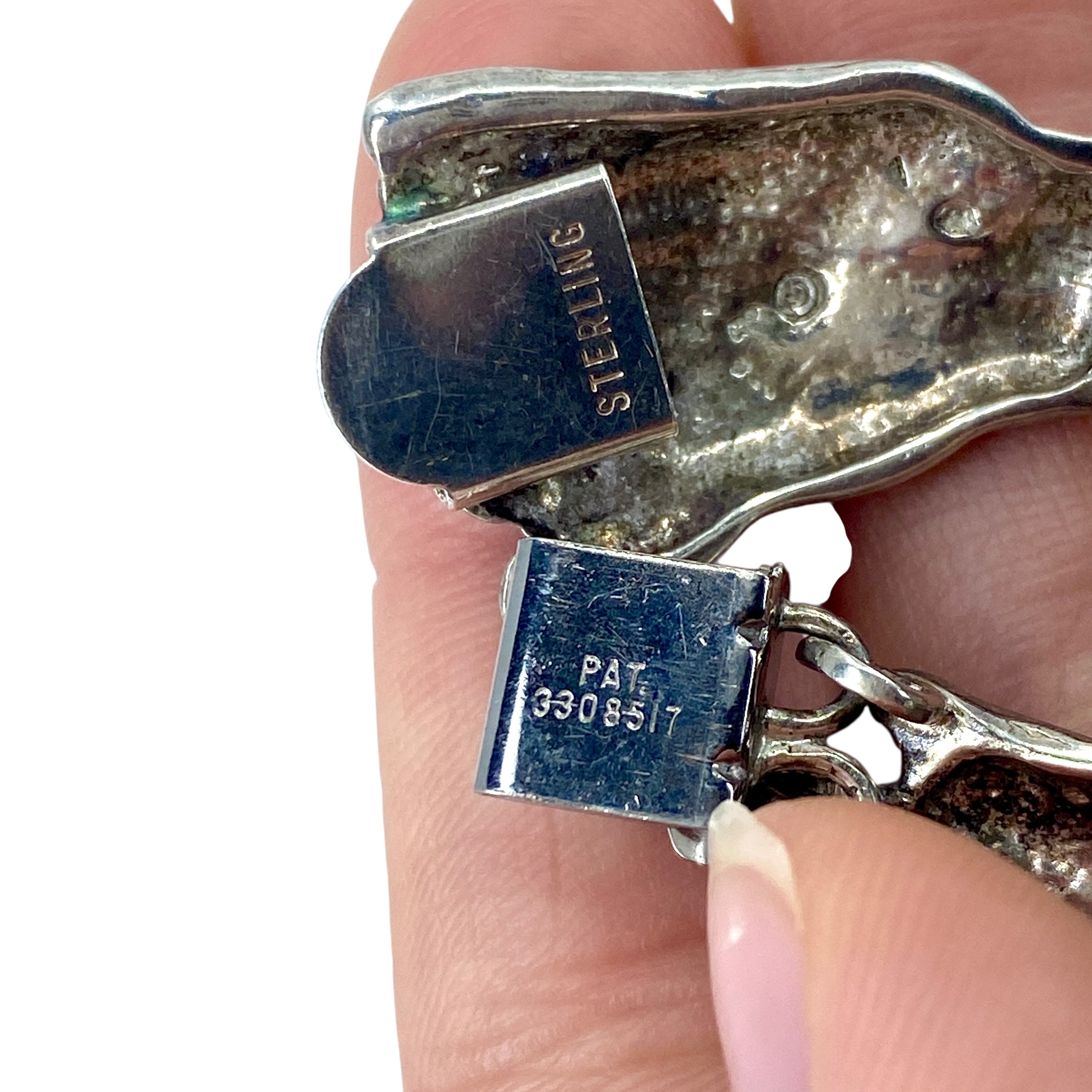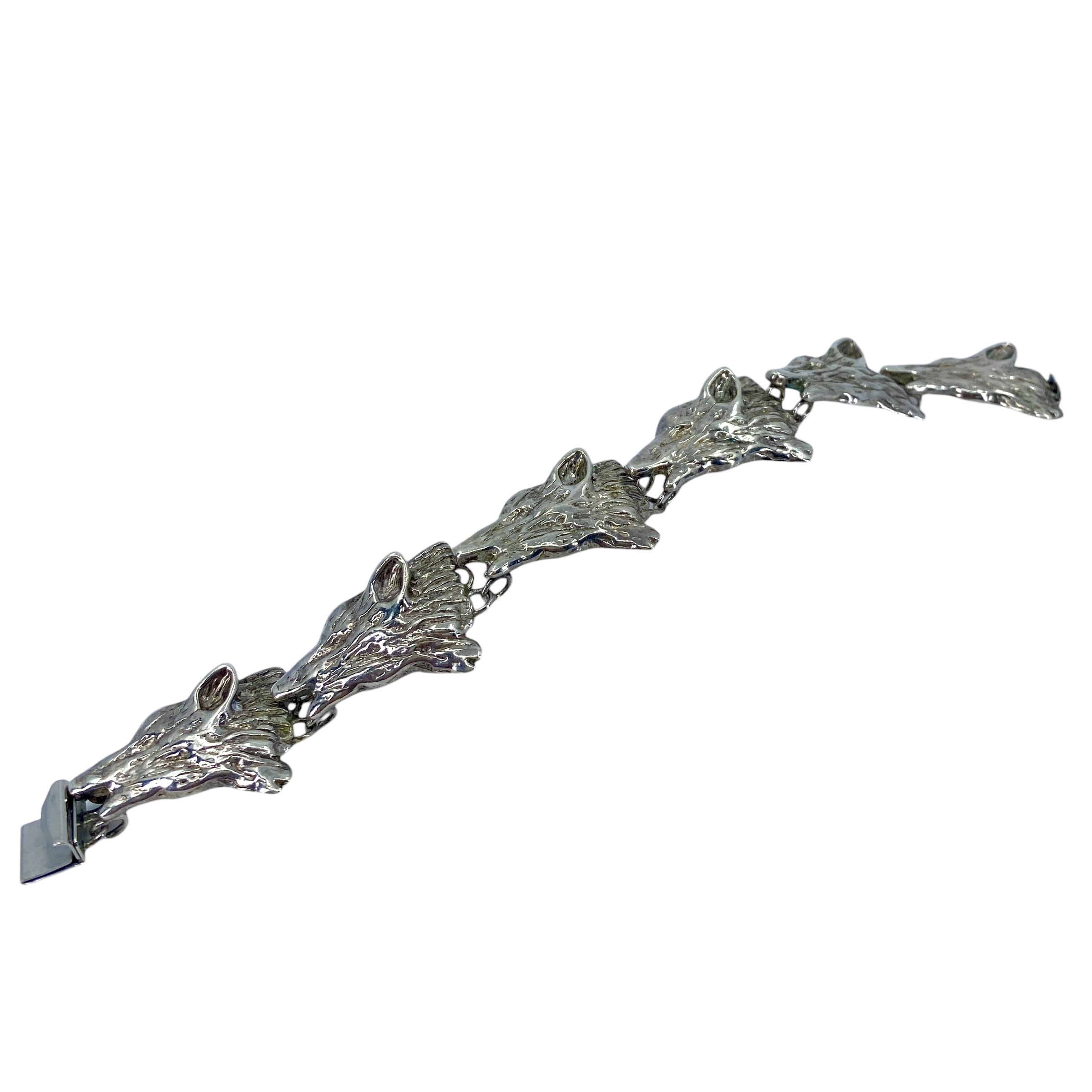 Chunky Sterling Silver Wolf Chain Signed Bracelet, 42.11, Engraved “PAT 3308517 Sterling” Copyright